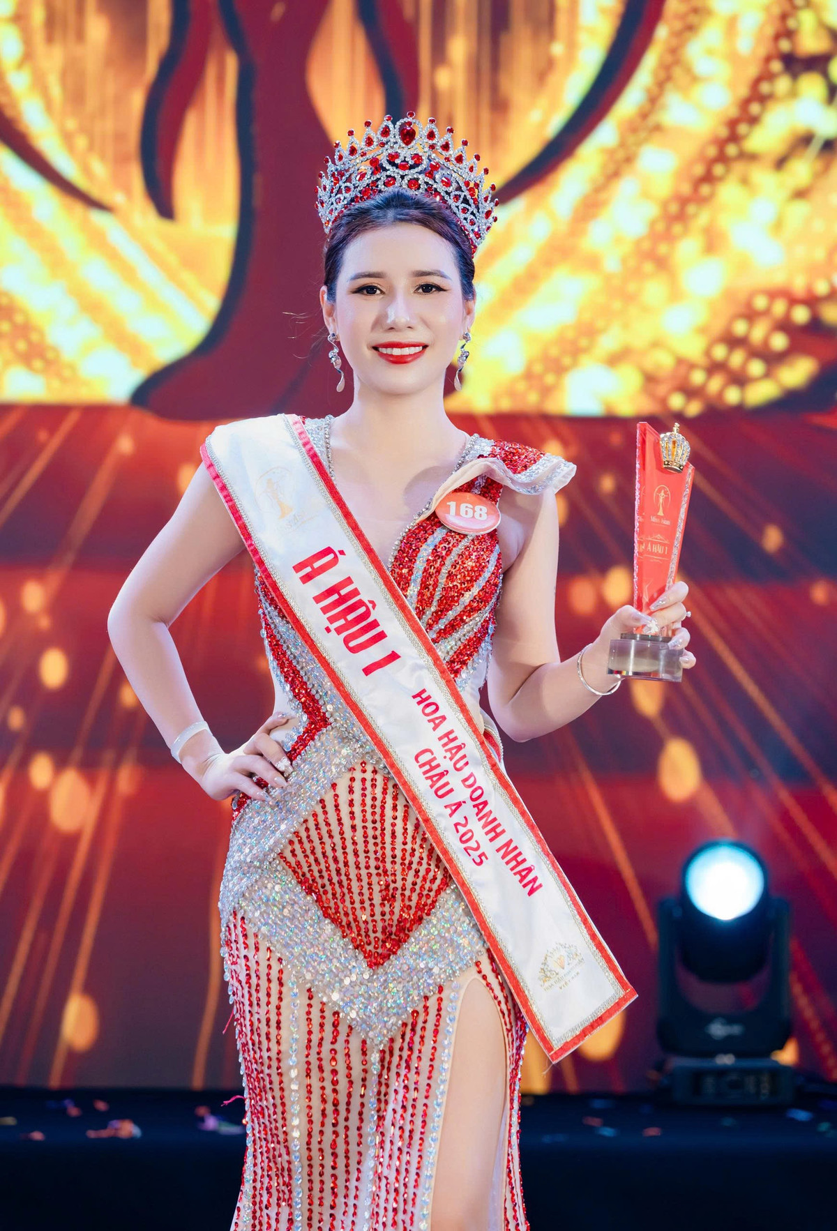 Đinh Thị Hiệp đạt danh hiệu Á hậu 1 trong đêm chung kết Hoa hậu Doanh nhân châu Á 2025 – Miss Asian 2025. Ảnh: Team Bình Nguyễn