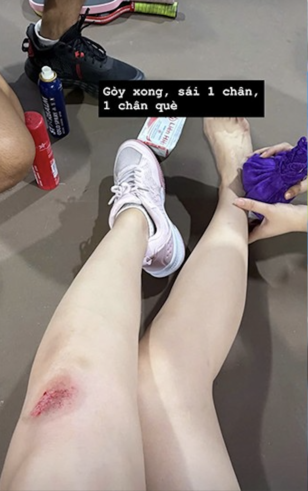 Cũng trong story đăng tải trên trang cá nhân, Huyền My chia sẻ: “Rồi xong, sái 1 chân, 1 chân què”. Dòng chú thích mang tính chất cập nhật về chấn thương của cô khiến nhiều người lo lắng.