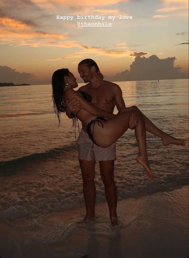 Trên Instagram story, cô đăng lại bài viết chúc mừng sinh nhật từ tài khoản của bạn trai, trong đó, cả hai cùng xuất hiện tình tứ bên bờ biển. "Happy birthday my love" (Chúc mừng sinh nhật em yêu), người yêu nàng á hậu viết.