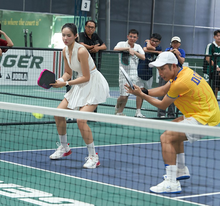 Người đẹp Trang Đào thi tài tại giải. Tuy có khoảng 1 năm đến với pickleball, nữ doanh nhân trẻ này cho biết do bận công việc, cô ít có thời gian luyện tập cũng như thi đấu cọ xát. Vì vậy vẫn còn gặp vấn đề tâm lý. Cô hy vọng mình sẽ khắc phục điểm yếu này trong thời gian tới.
