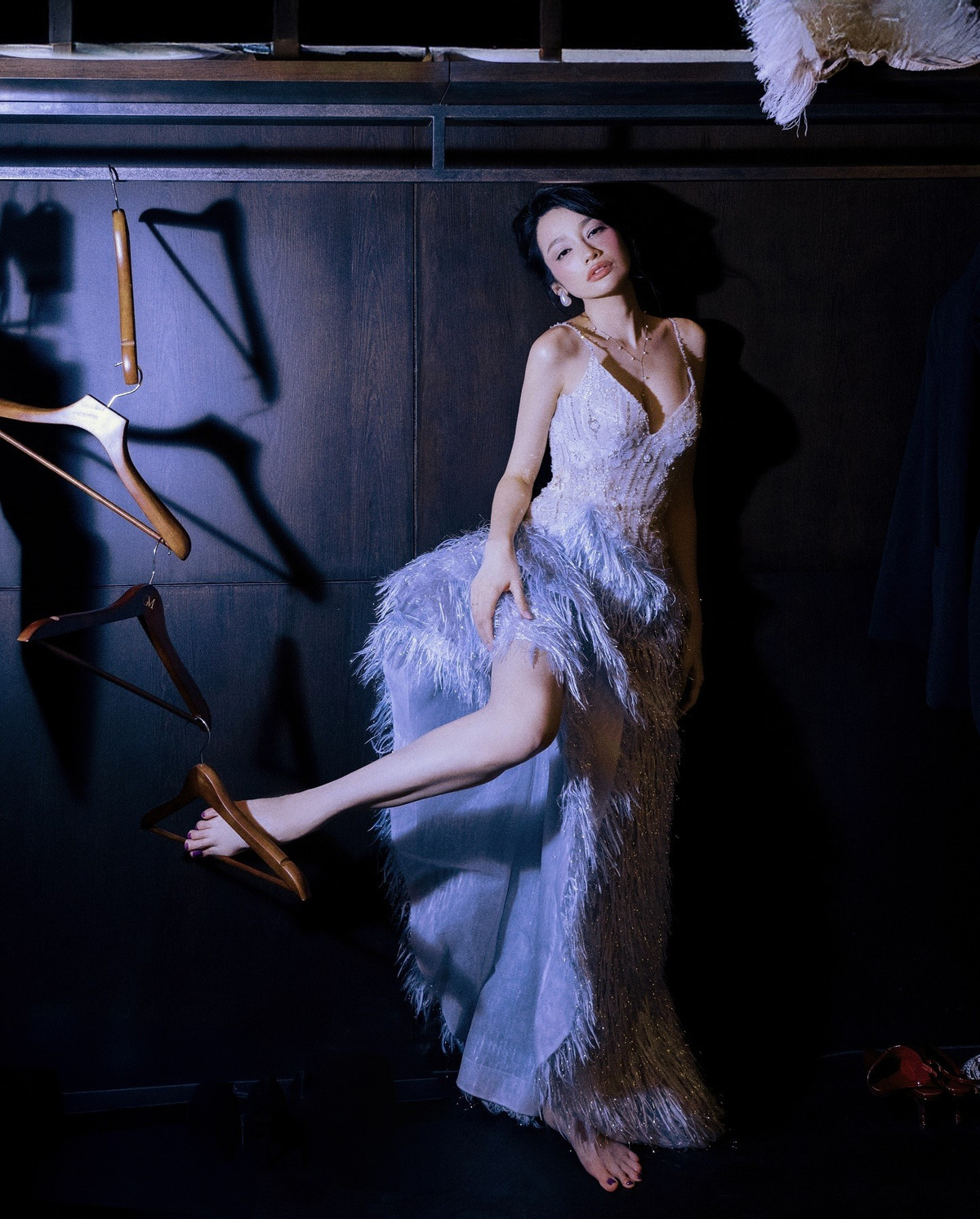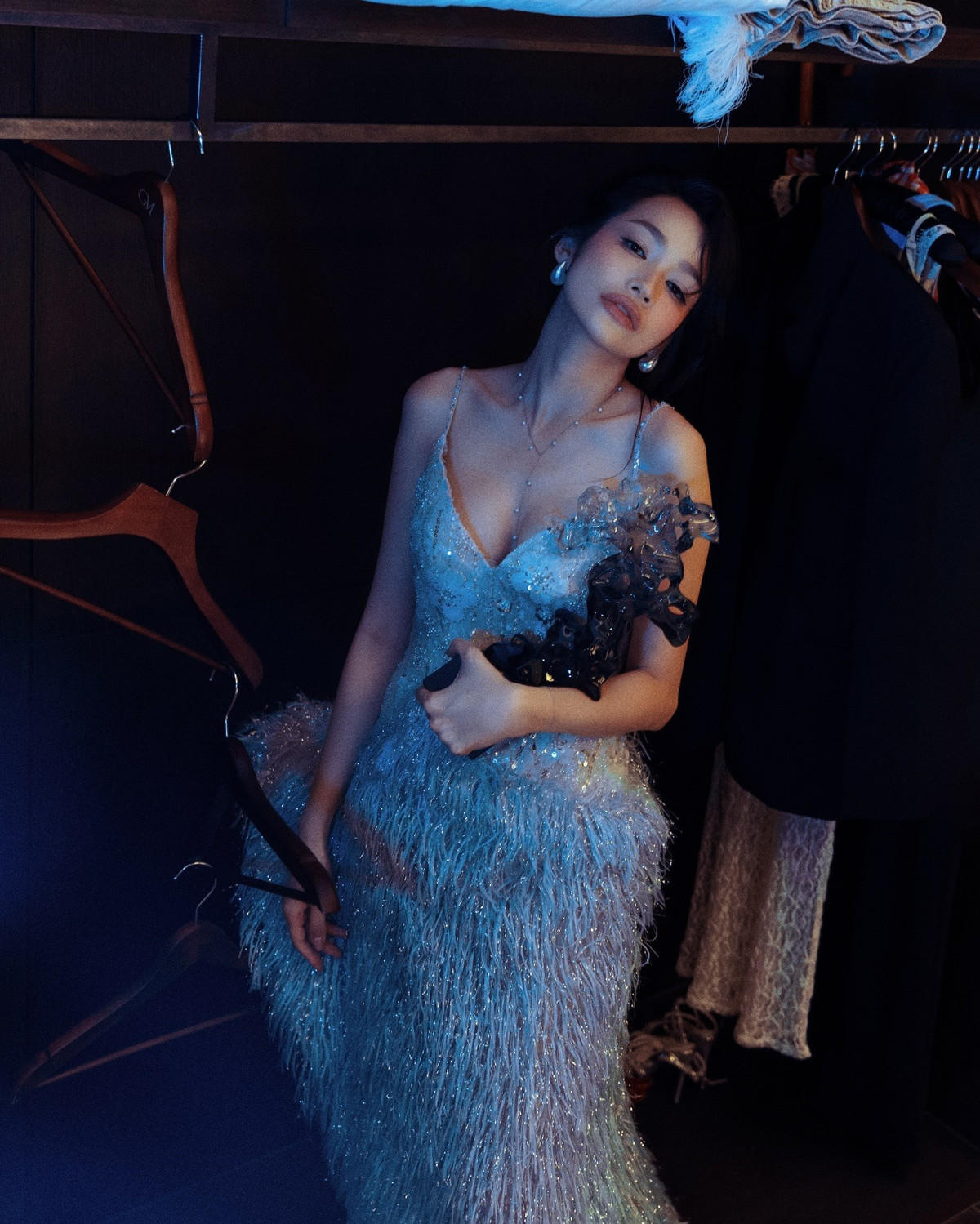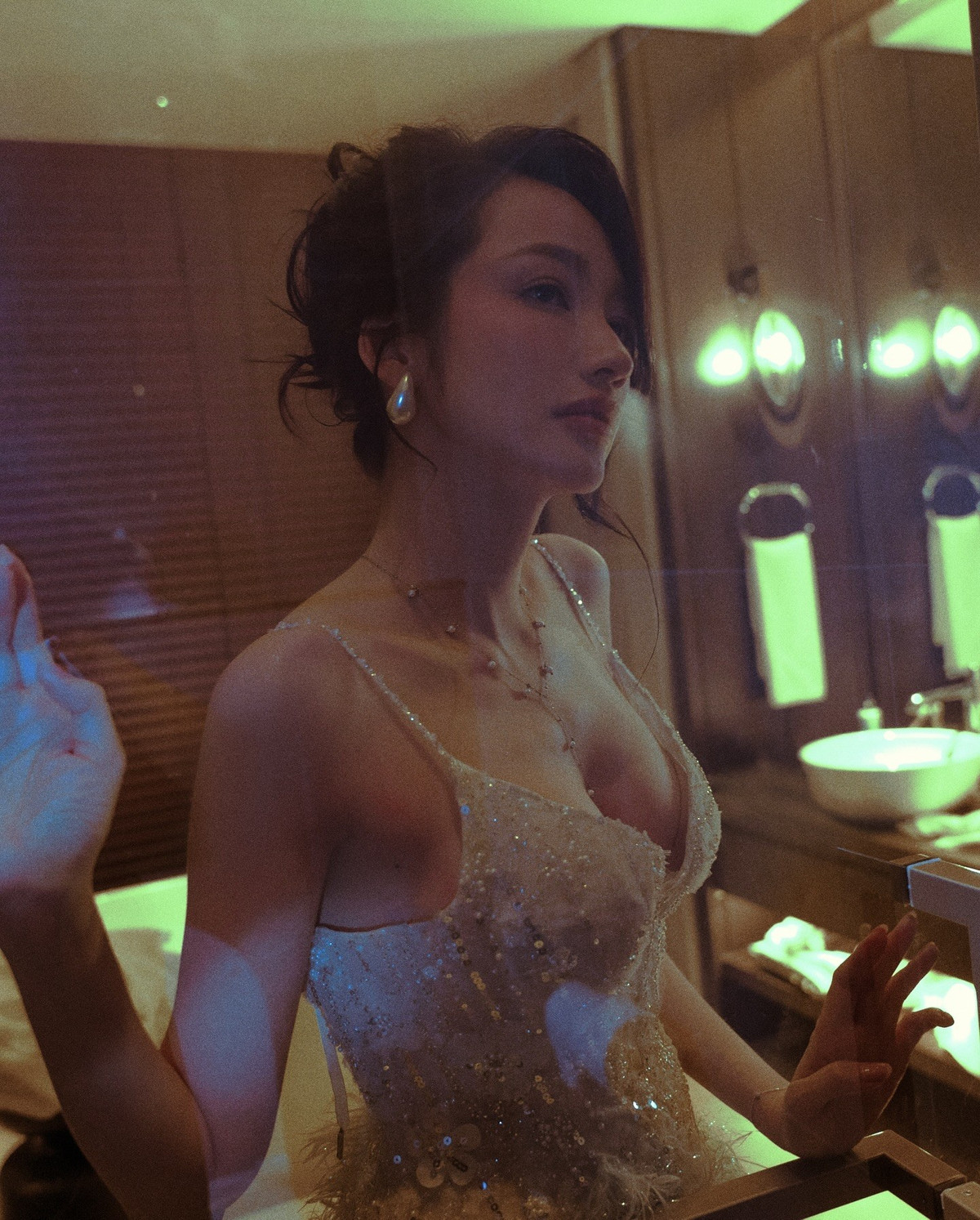 Á hậu Trương Tri Trúc Diễm mới đây tung bộ ảnh nghệ thuật gây sốt khi xuất hiện trong thiết kế đầm hai dây đính kim sa lấp lánh