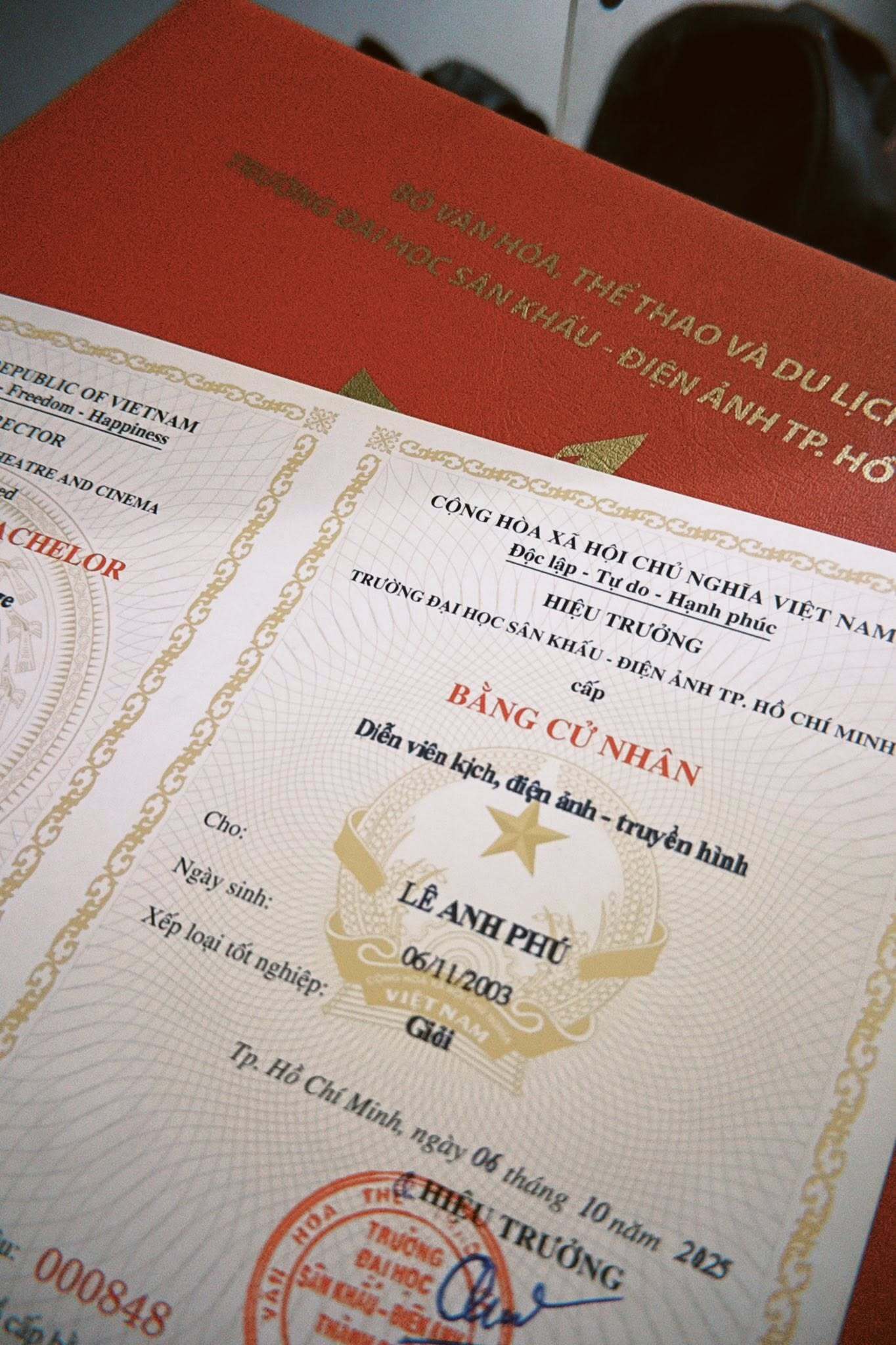 Hồng Phú có thành tích học tập đáng ngưỡng mộ khi tốt nghiệp loại giỏi và là á khoa duy nhất của ngành diễn viên kịch, điện ảnh - truyền hình.