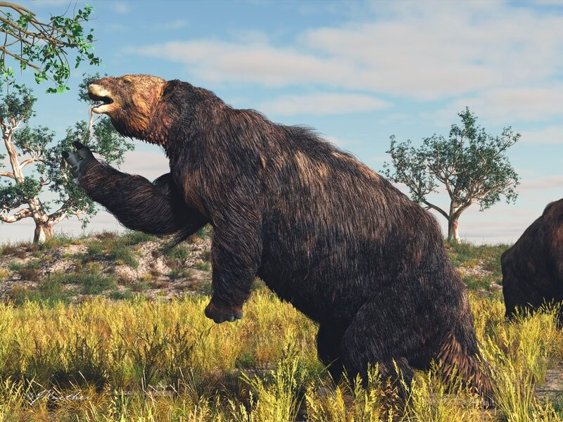 Kích thước khổng lồ ấn tượng. Eremotherium có thể cao tới 6 mét khi đứng bằng hai chân sau, nặng hơn 3 tấn, trở thành một trong những loài lười lớn nhất từng tồn tại. Ảnh: Pinterest.