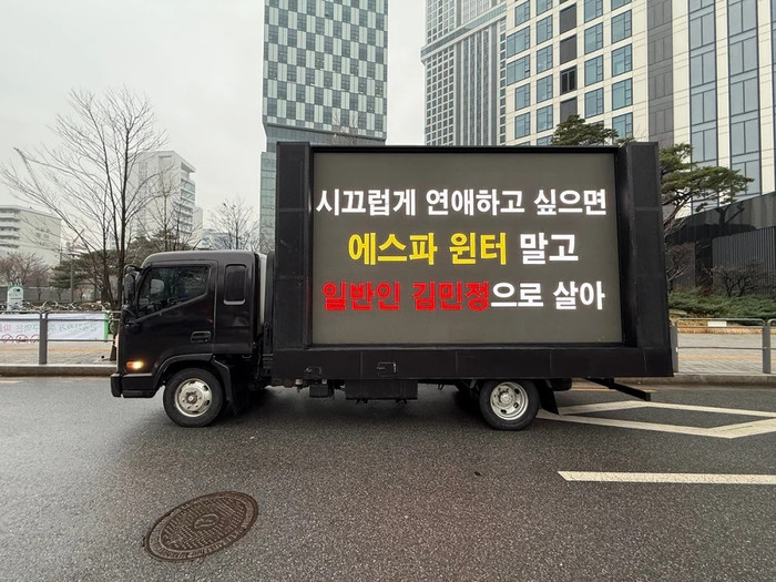 Ngày 10/12, trước trụ sở SM Entertainment, một đoàn xe tải gắn màn hình LED đã xuất hiện, mở ra làn sóng phản đối mới nhằm vào Winter, thành viên nhóm nhạc nữ aespa. Đây là động thái tiếp nối các cuộc biểu tình bằng xe tải đang trở thành “văn hóa phản ứng” quen thuộc của một bộ phận người hâm mộ Kpop thời gian gần đây.