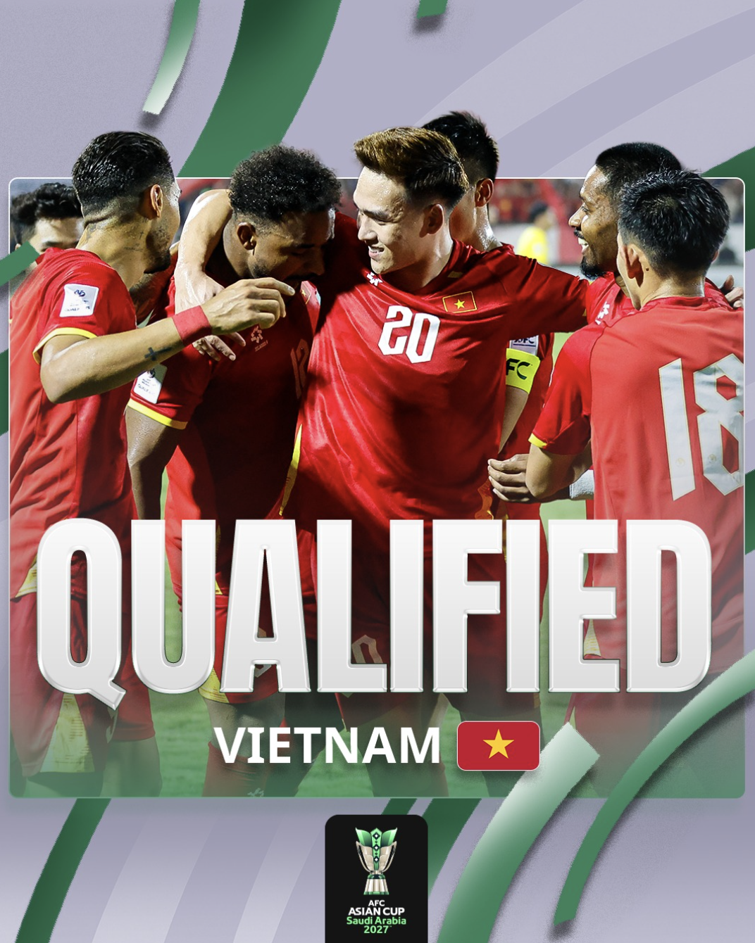 Sau khi lượt trận cuối vòng loại Asian Cup 2027 khép lại, Liên đoàn bóng đá châu Á (AFC) chính thức xác nhận đội tuyển Việt Nam giành quyền tham dự vòng chung kết bằng một thông điệp ngắn gọn: “Qualified” (Đủ điều kiện).