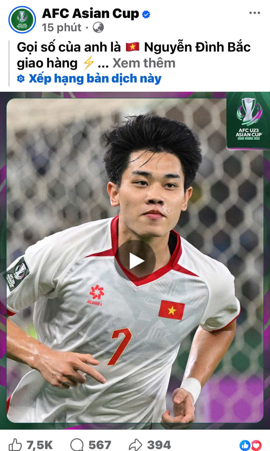 Trong bài đăng trên trang chính thức, Liên đoàn bóng đá châu Á - AFC Asian Cup đã gây chú ý với dòng trạng thái: “Gọi số của anh là Nguyễn Đình Bắc giao hàng.”