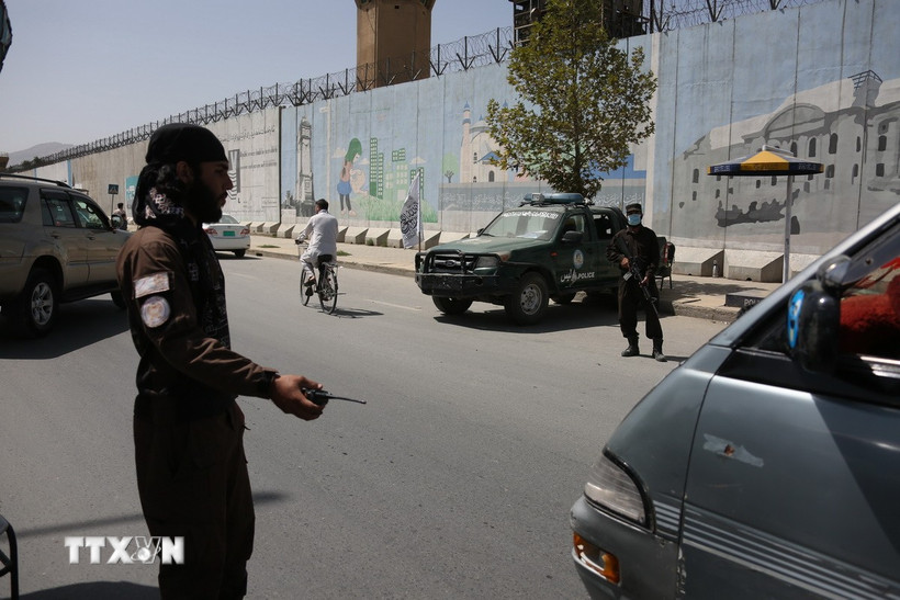 Lực lượng an ninh Afghanistan gác tại hiện trường một vụ tấn công ở Kabul. (Ảnh: THX/TTXVN)