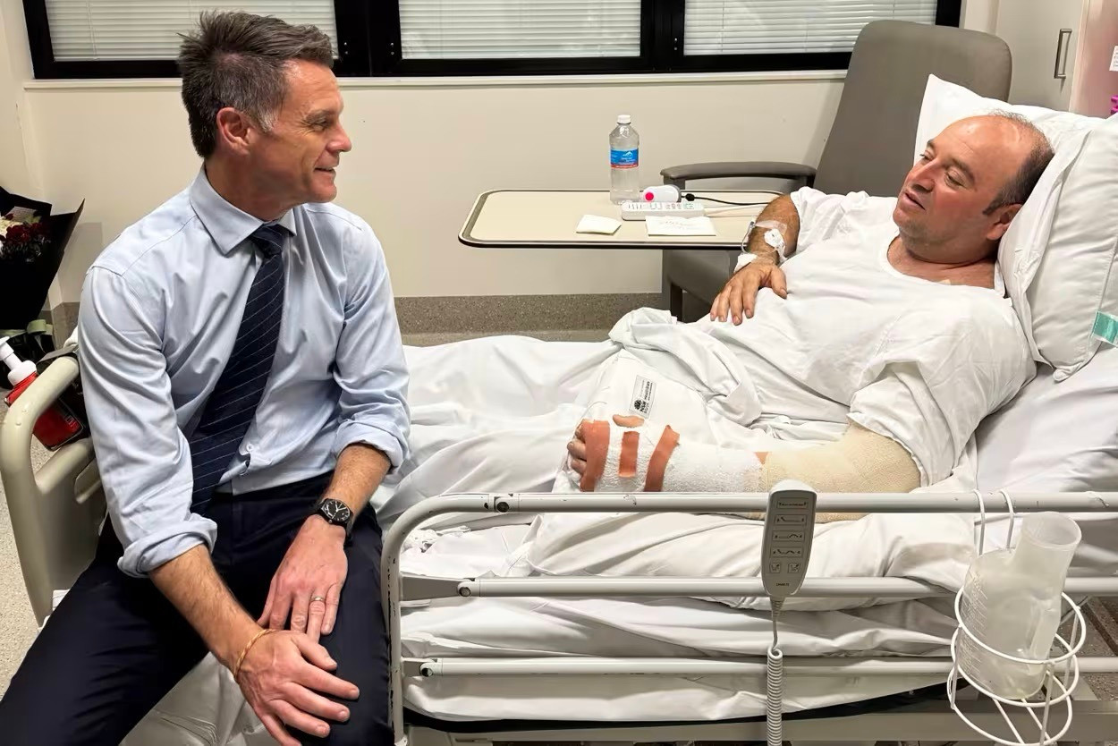 Thủ hiến bang New South Wales Chris Minns đã trực tiếp đến thăm "người hùng" Ahmed al-Ahmed, 43 tuổi, tại Bệnh viện St. George (@ChrisMinnsMP/X)