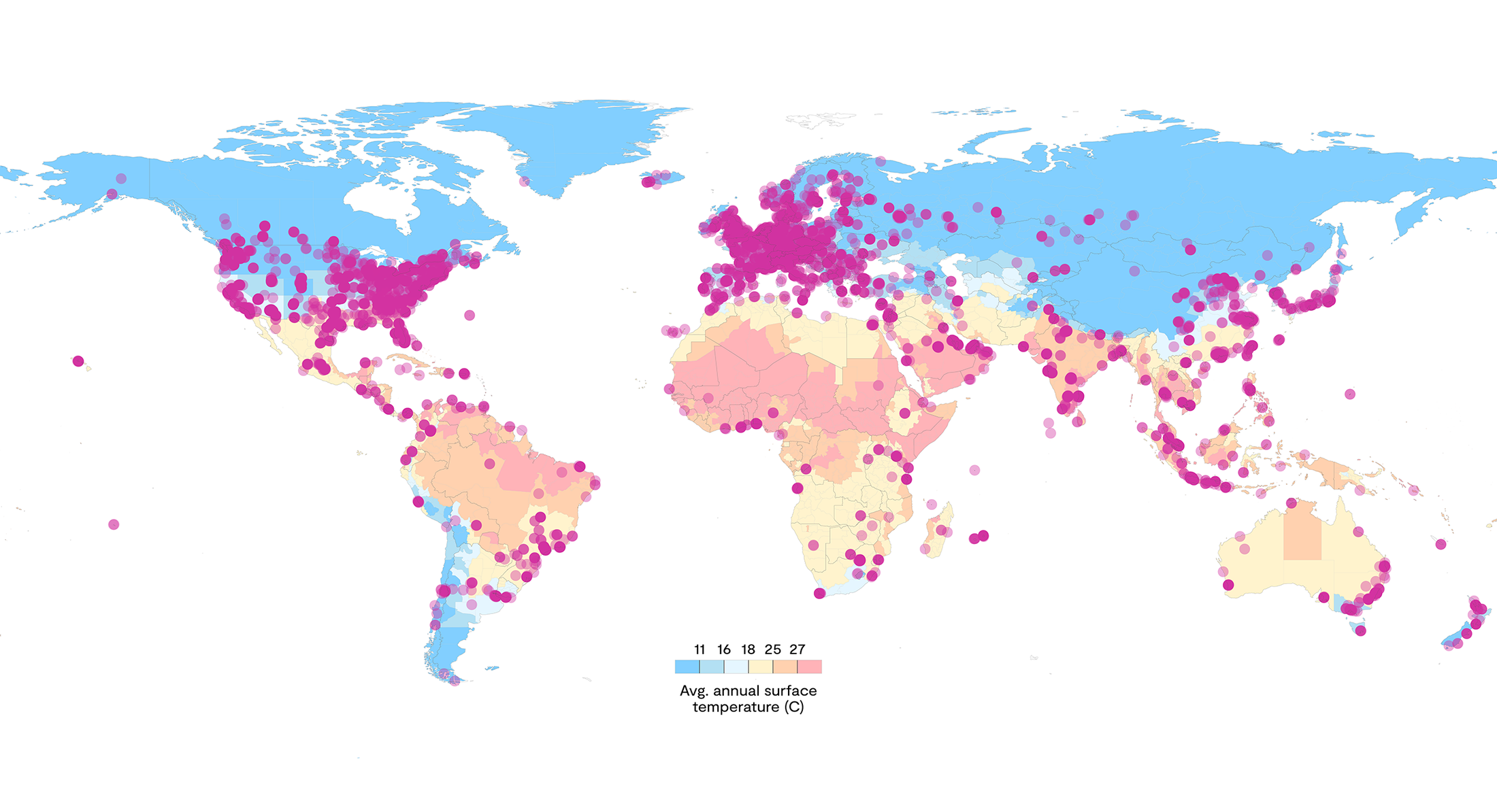 Phạm vi nhiệt độ lý tưởng cho trung tâm dữ liệu là từ 18°C đến 27°C. Nhiệt độ cao, đòi hỏi hệ thống làm mát đắt tiền hơn, là một trong những yếu tố rủi ro lớn nhất đối với trung tâm dữ liệu. (Nguồn: Rest of World)