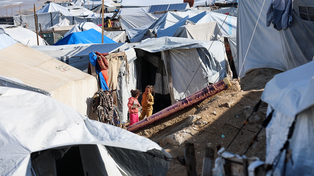 Trẻ em Palestine đứng giữa những chiếc lều được sử dụng bởi những người Palestine bị di dời, trong bối cảnh ngừng bắn giữa Israel và Hamas, tại Khan Younis, phía nam Dải Gaza, ngày 15/11. (Ảnh: Reuters).