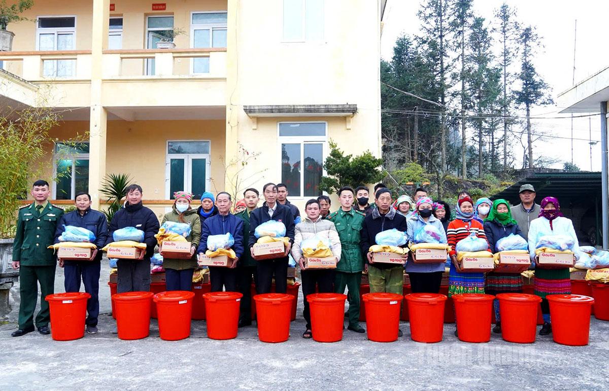 Lãnh đạo xã Sơn Vĩ, Đồn Biên phòng Xín Cái, cùng các nhà hảo tâm tổ chức trao quà Tết cho gia đình khó khăn.