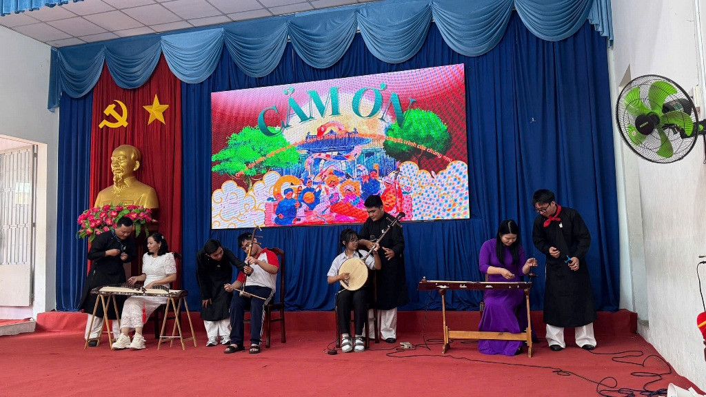 Đem cải lương đến trường học. Trong ảnh, Trường THPT chuyên Hùng Vương (TP.HCM) sinh hoạt chuyên đề cải lương.