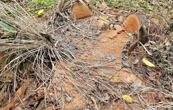 Tại khu vực kinh doanh cây cảnh (trước đây) có từ 3 - 4 cây xà cừ bị đốn hạ. Các đoạn thân cây đã được vận chuyển đi nơi khác, còn gốc cây được che bằng các búi cỏ, đất; đường kính gốc cây từ 50 - 70cm. Phía bên trong hàng rào lưới B40 có cửa ra vào được khóa chặt, lộ một vùng toàn lá cây xà cừ đã khô, một số gốc cây dấu cưa rất rõ.