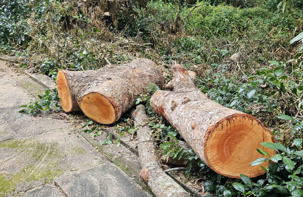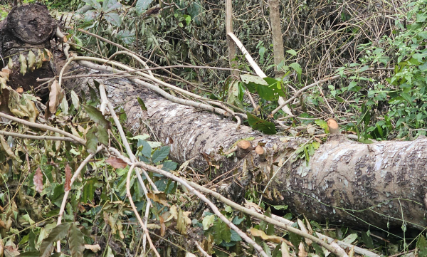 Bước vào sâu bên trong (khu vực gần sân bóng đá mini) có rất nhiều cây xà cừ bị đốn hạ; nhiều đoạn thân cây nằm ngổn ngang bên đường...