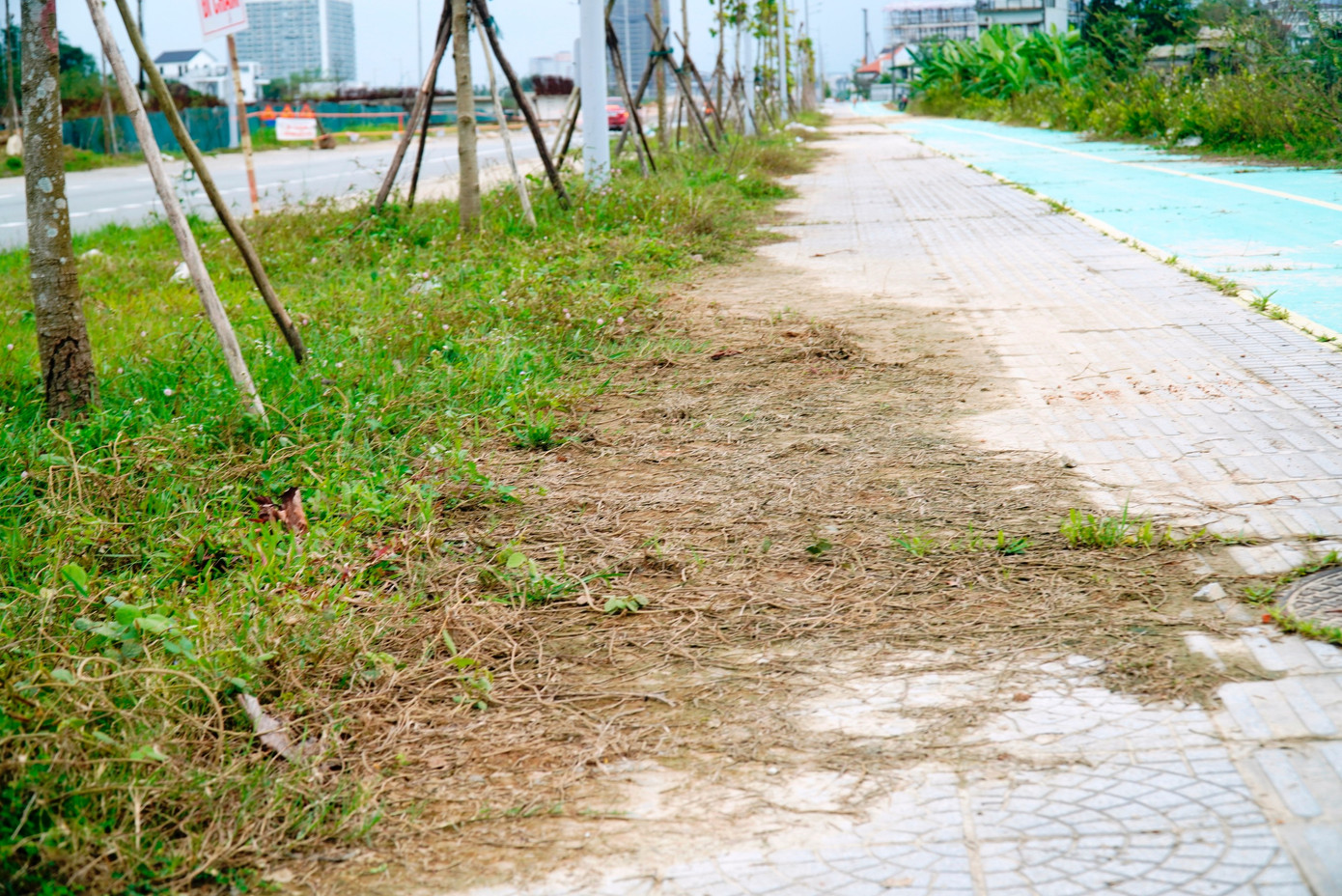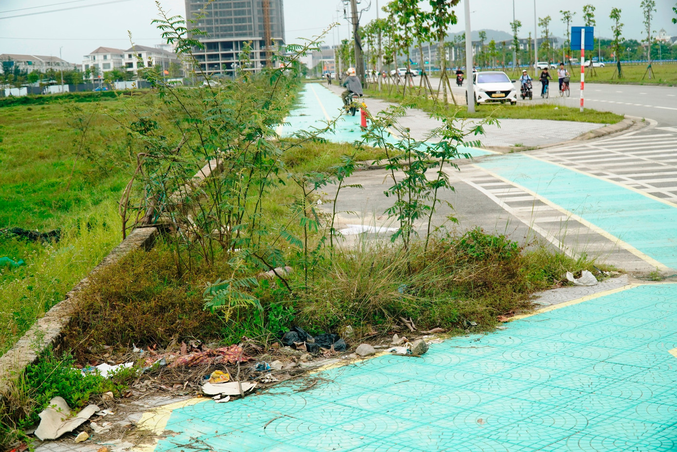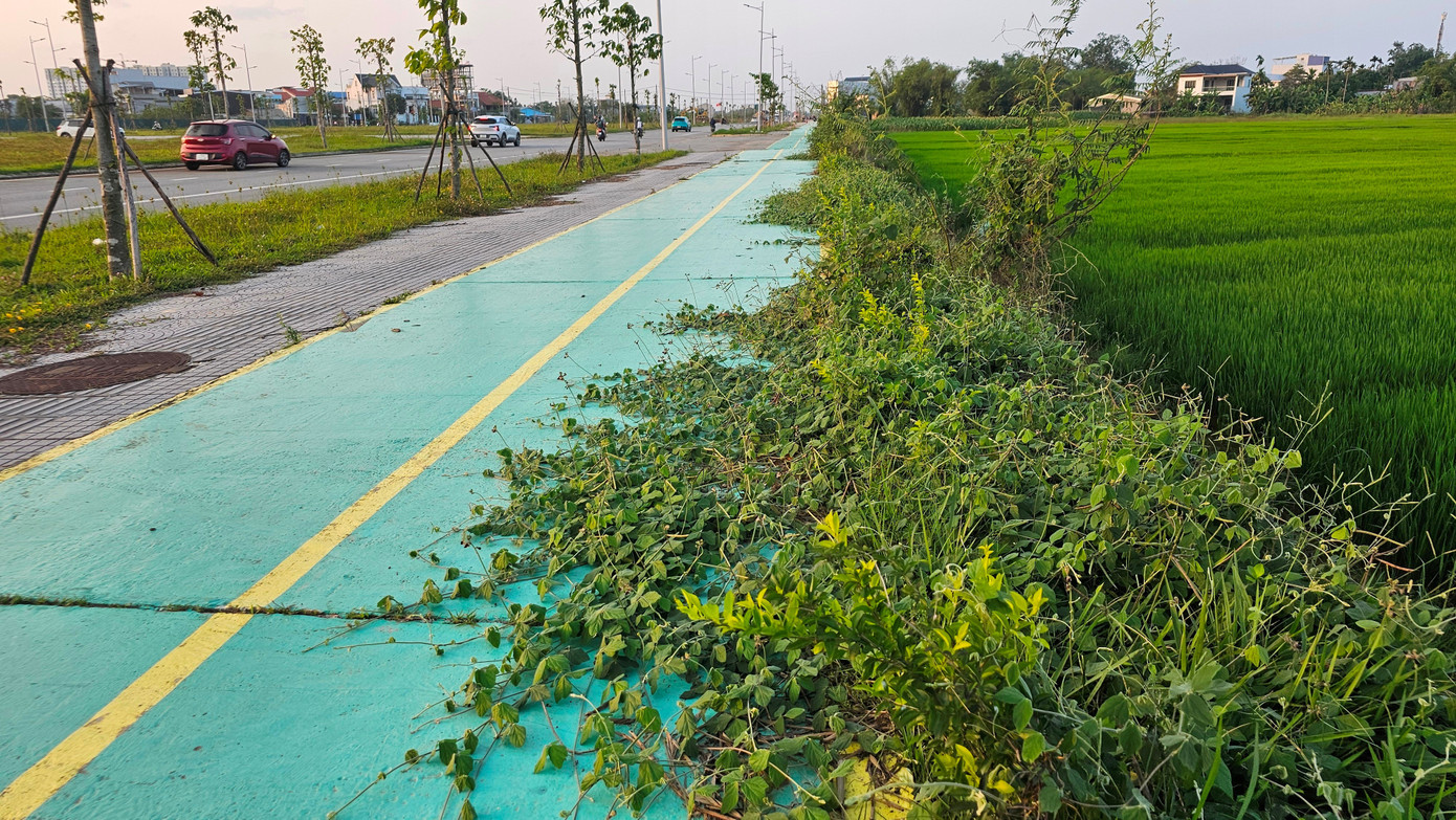 Do thiếu duy tu, nhiều đoạn vỉa hè dạo bộ và đường sơn xanh dành riêng cho xe đạp bị cỏ dại, dây leo xâm lấn, làm mất mỹ quan đô thị và ảnh hưởng chức năng công trình.