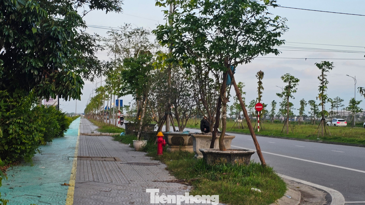 Trên tuyến đường Tố Hữu, Võ Nguyên Giáp, một số đoạn vỉa hè và đường xe đạp cũng bị chiếm dụng làm nơi tập kết, kinh doanh cây cảnh.