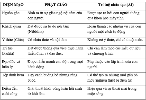 Bảng so sánh Phật giáo so với Trí tuệ nhân tạo (AI)