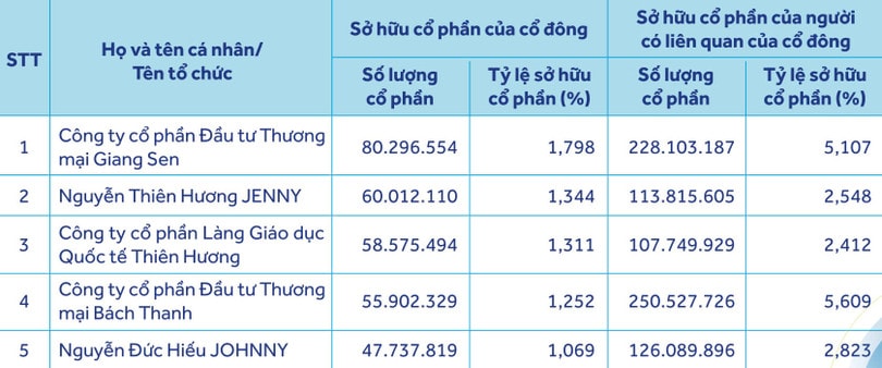 Nhìn vào danh mục đầu tư của gia đình bà Thúy, người ta thấy một chiến lược đầu tư cực kỳ sắc sảo. Theo đó, tại danh sách cổ đông sở hữu trên 1% vốn điều lệ được ACB công bố ngày 29/4/2025, hai người con của bà Thúy là bà Nguyễn Thiên Hương (Jenny) và ông Nguyễn Đức Hiếu (Johnny) đang nắm giữ khối lượng lớn cổ phiếu nhà băng này. Cụ thể, bà Thiên Hương sở hữu hơn 63,2 triệu cổ phiếu và ông Đức Hiếu nắm giữ 51 triệu cổ phiếu. Tổng cộng, nhóm cổ đông liên quan đến gia đình bà Thúy sở hữu hơn 174,76 triệu cổ phiếu ACB.