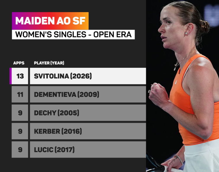 Lần thứ 13 góp mặt chính thức ở Australian Open, Svitolina mới tiến sâu tới vậy