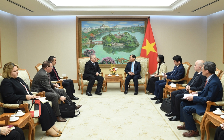 Phó Thủ tướng Bùi Thanh Sơn tiếp ông Lounes Magramane, Tổng Thư ký Bộ Ngoại giao, Cộng đồng quốc gia ở nước ngoài và các vấn đề châu Phi nước Cộng hòa Algeria Dân chủ và Nhân dân - Ảnh: VGP/Hải Minh