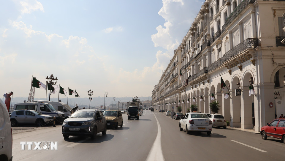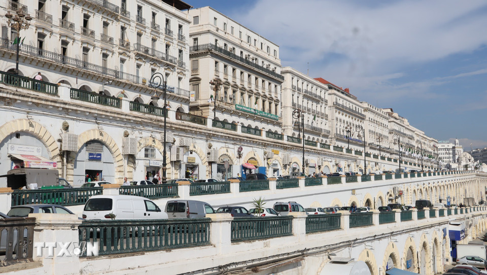 Trụ sở Ngân hàng Quốc gia Algeria trên Đại lộ Liệt sỹ với lối kiến trúc Pháp tiêu biểu. (Ảnh: Mạnh Hùng/TTXVN)