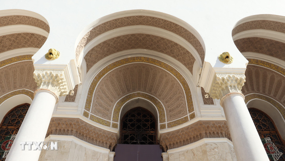 Thánh đường Hồi giáo Ketchaoua là biểu tượng tiêu biểu cho nghệ thuật Hồi giáo Bắc Phi với cổng vòm móng ngựa mềm mại, họa tiết hình học và thư pháp Qur’an được khắc tinh xảo. (Ảnh: Mạnh Hùng/TTXVN)
