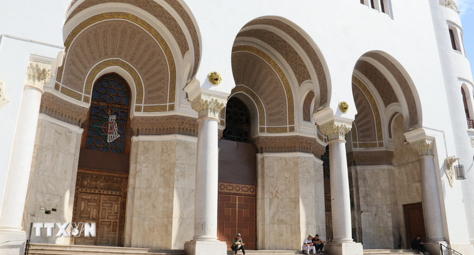 Nhà thờ Hồi giáo Ibn Badis ở khu trung tâm thủ đô Algiers với kiến trúc cột trụ tiêu biểu. (Ảnh: Mạnh Hùng/TTXVN)