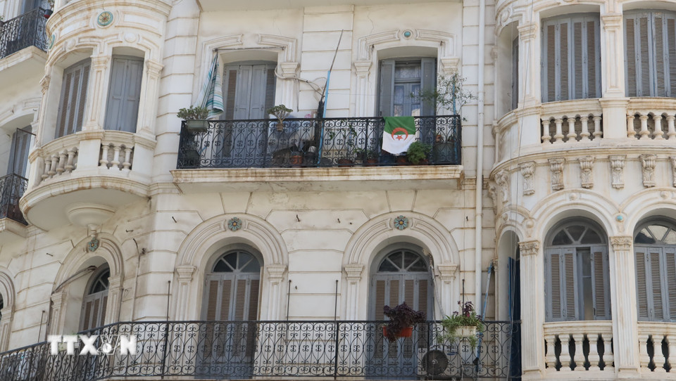 Các tòa nhà với ban công sắt, tường sơn trắng, cửa sổ đối xứng ở thủ đô Algiers vừa tạo cảm giác sang trọng vừa duyên dáng. (Ảnh: Mạnh Hùng/TTXVN)