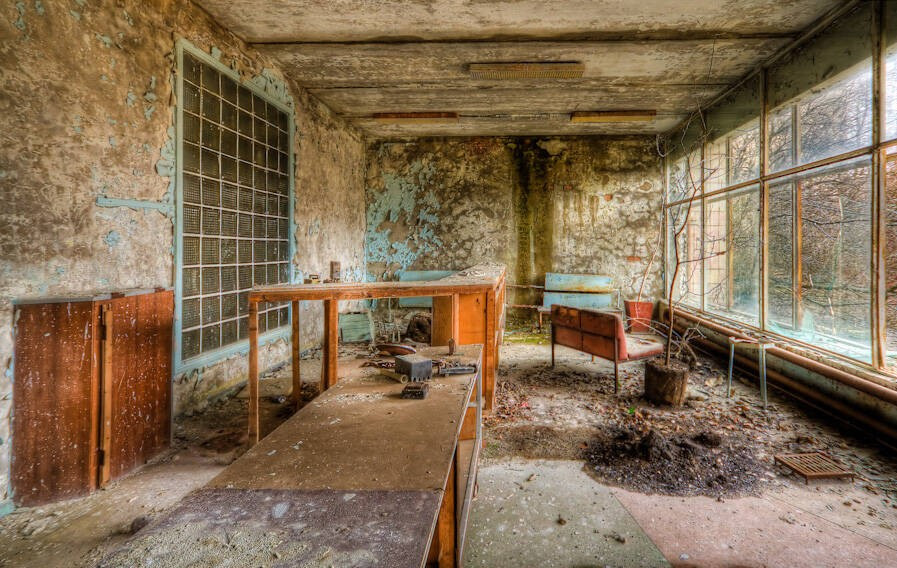 Một góc khác bên trong Bệnh viện Pripyat bỏ hoang. Ảnh: Flickr.