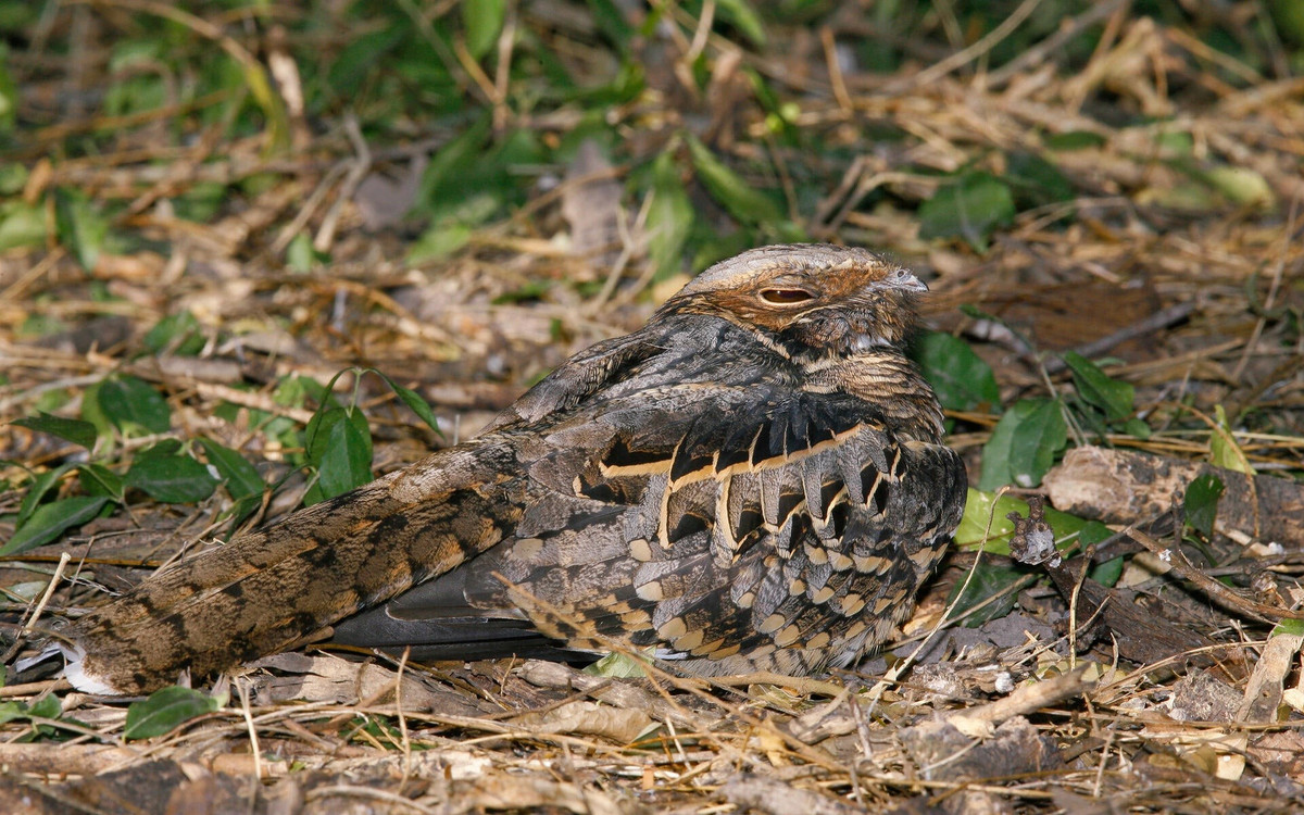 Chim cú muỗi là bậc thầy ngụy trang trong thế giới chim. Bộ lông lốm đốm nâu, xám và đen giúp các loài cú muỗi gần như “hòa tan” vào thân cây, mặt đất hay thảm lá khô khi đậu nghỉ ban ngày. Ảnh: Pinterest.