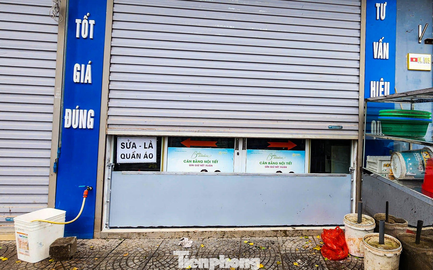 Những tấm vách ngăn cửa được người dân chuẩn bị tại chợ dân sinh Phú Đô – nơi từng ngập sâu trong đợt mưa ngày 30/9.