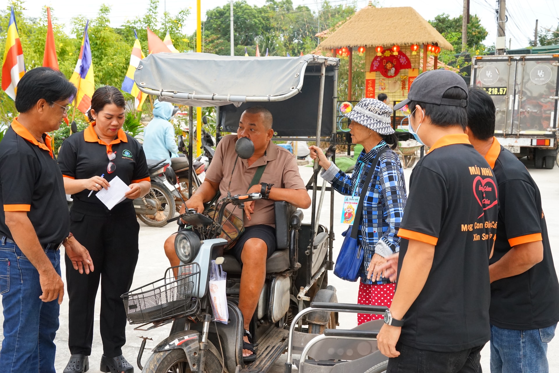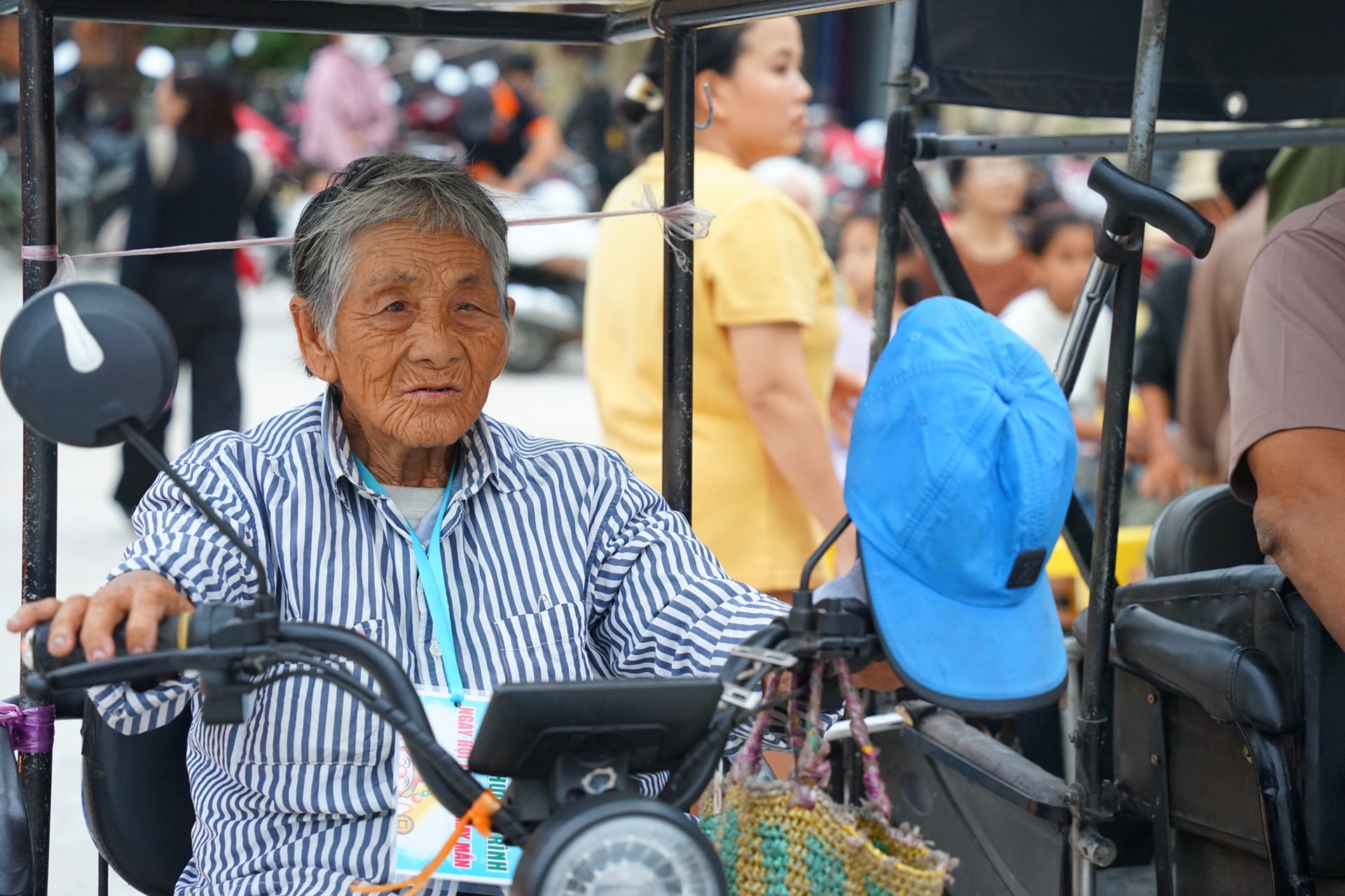 Chiếc xe điện được cải tạo thành ba bánh là phương tiện mưu sinh hằng ngày của bà. “Nhờ chương trình, năm nào tôi cũng được đi ăn tiệc, nhận quà Tết, vui lắm”, bà Sương nói.