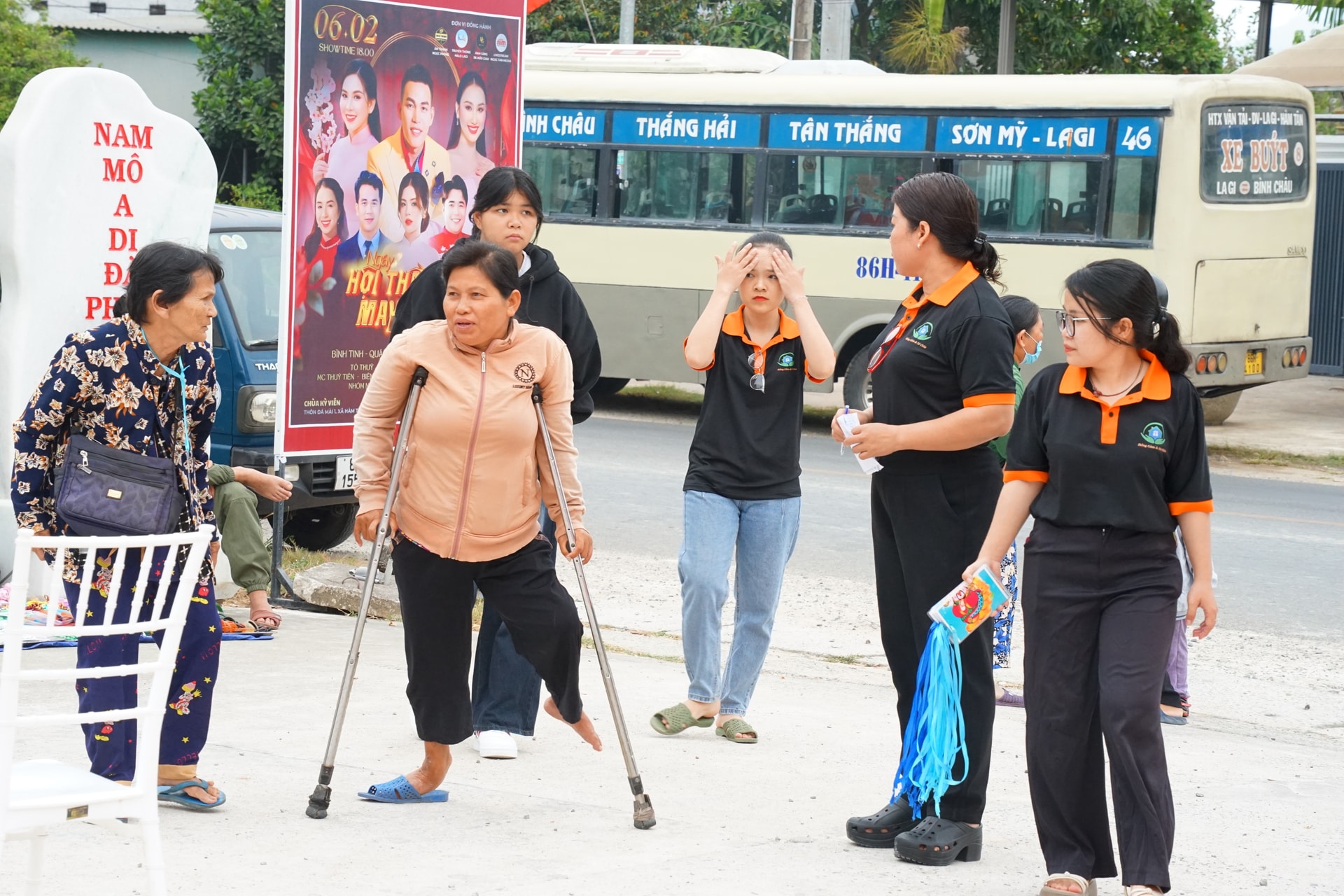 Bước chân khập khiến của cụ bà khi đến chương trình