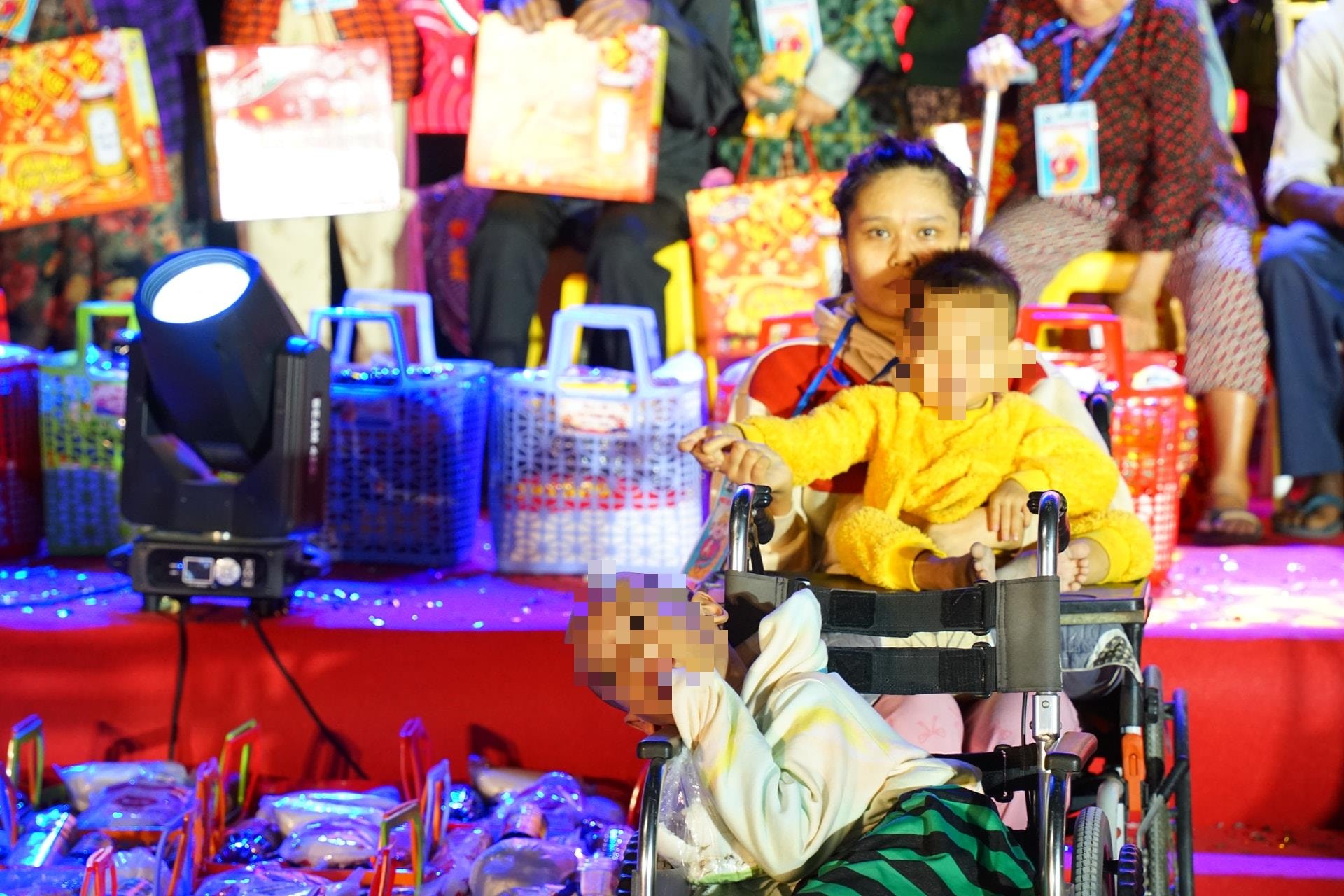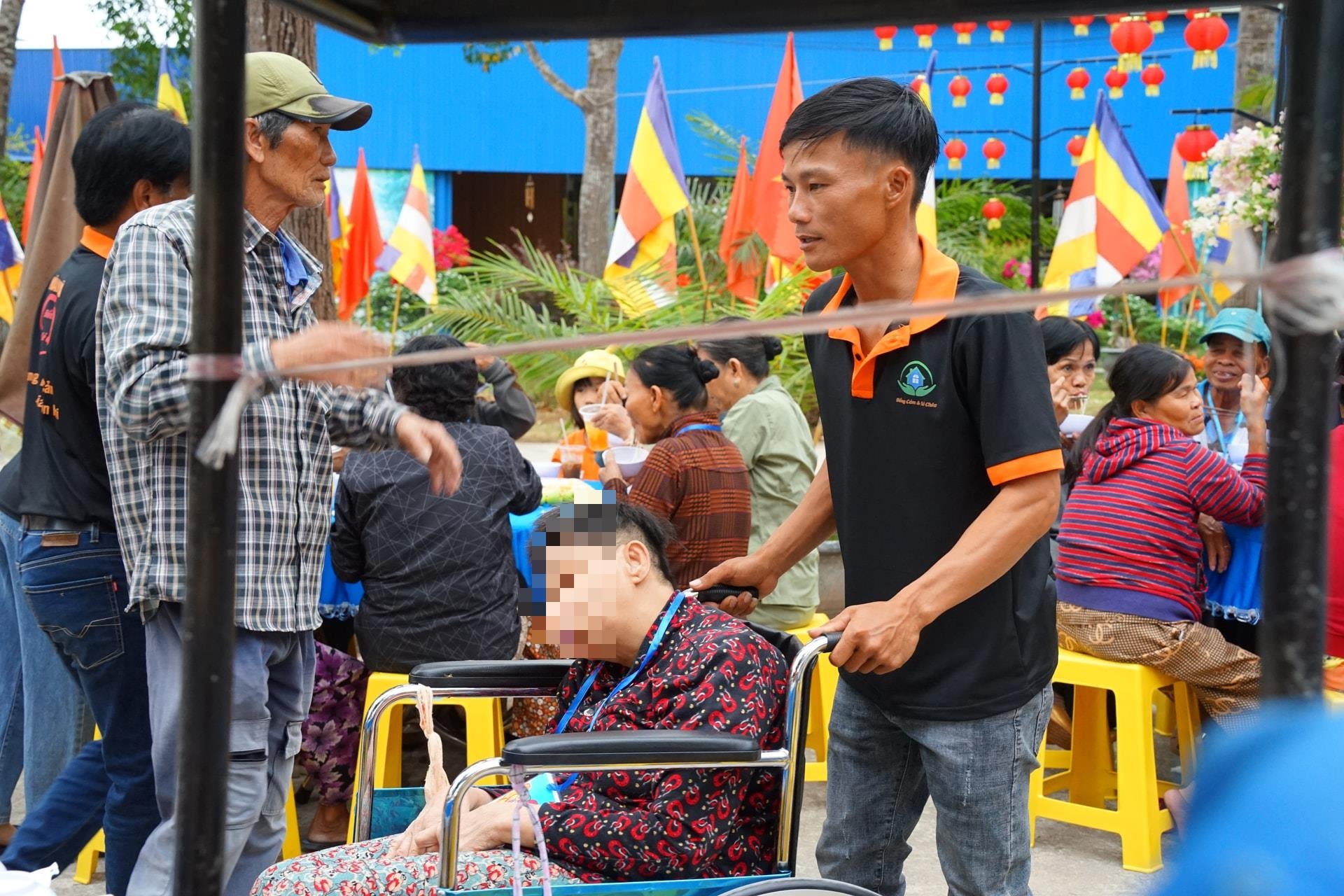 Nhiều người đến dự trong trang phục giản dị, có người ngồi xe lăn, có em nhỏ khuyết tật được người thân bế trên tay. Với họ, một bữa cơm đủ đầy và một buổi chiều được nghỉ ngơi, vui chơi là điều hiếm hoi trong năm.