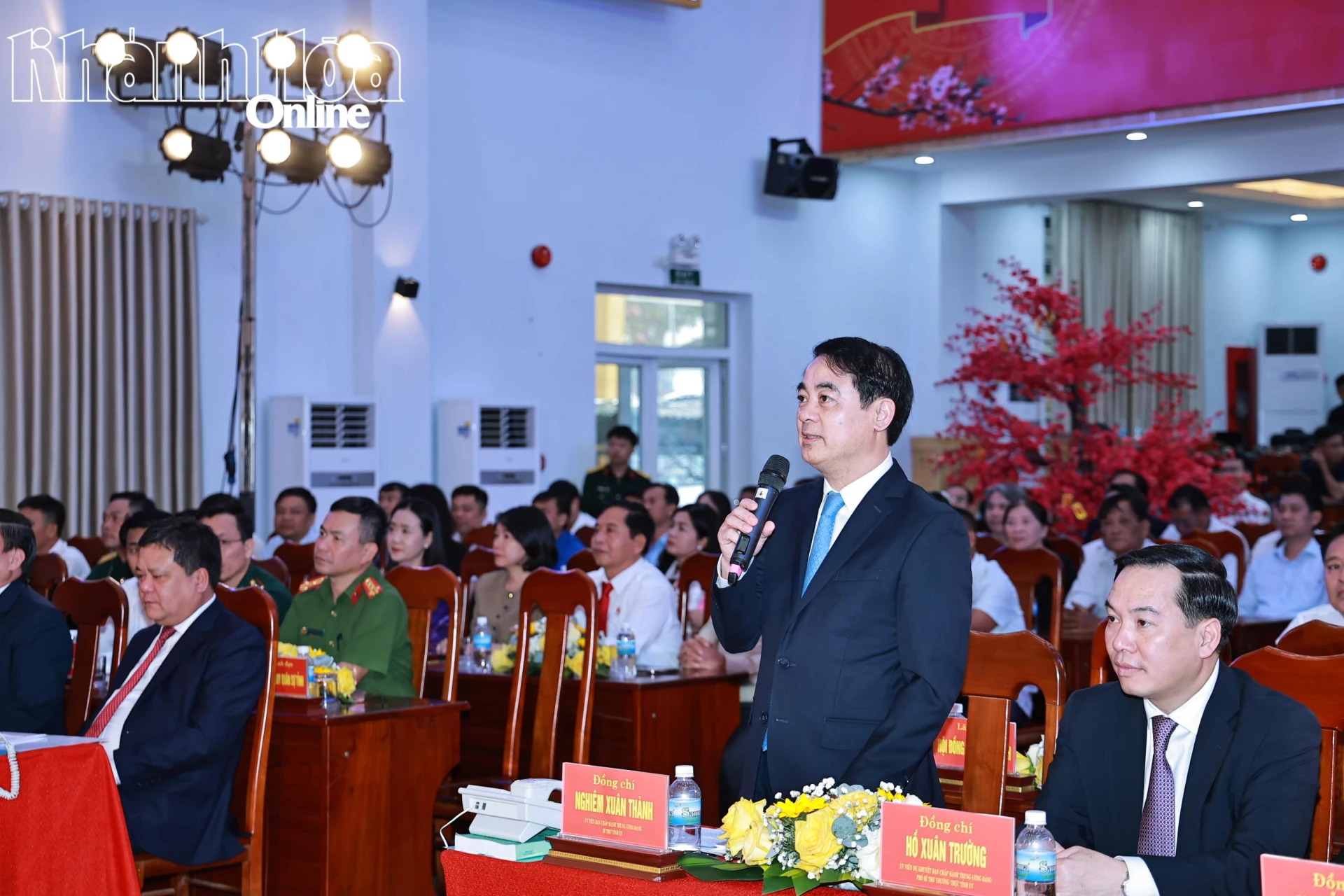 Tại chương trình, Bí thư Tỉnh ủy Nghiêm Xuân Thành đã gửi lời thăm hỏi, động viên, chúc Tết đến cán bộ, chiến sĩ, Nhân dân đang sinh sống, công tác tại các đảo thuộc đặc khu Trường Sa. Thông qua đó, đồng chí bày tỏ niềm vui khi thấy không khí đón Tết ở nơi biển, đảo tiền tiêu của Tổ quốc vui tươi, đầy đủ cả về vật chất và tinh thần. Đặc biệt, đồng chí đánh giá cao tinh thần vui xuân nhưng không quên nhiệm vụ của cán bộ, chiến sĩ ngày đêm canh gác giữ bình yên cho Tổ quốc, không để Tổ quốc bất ngờ trước mọi tình huống.