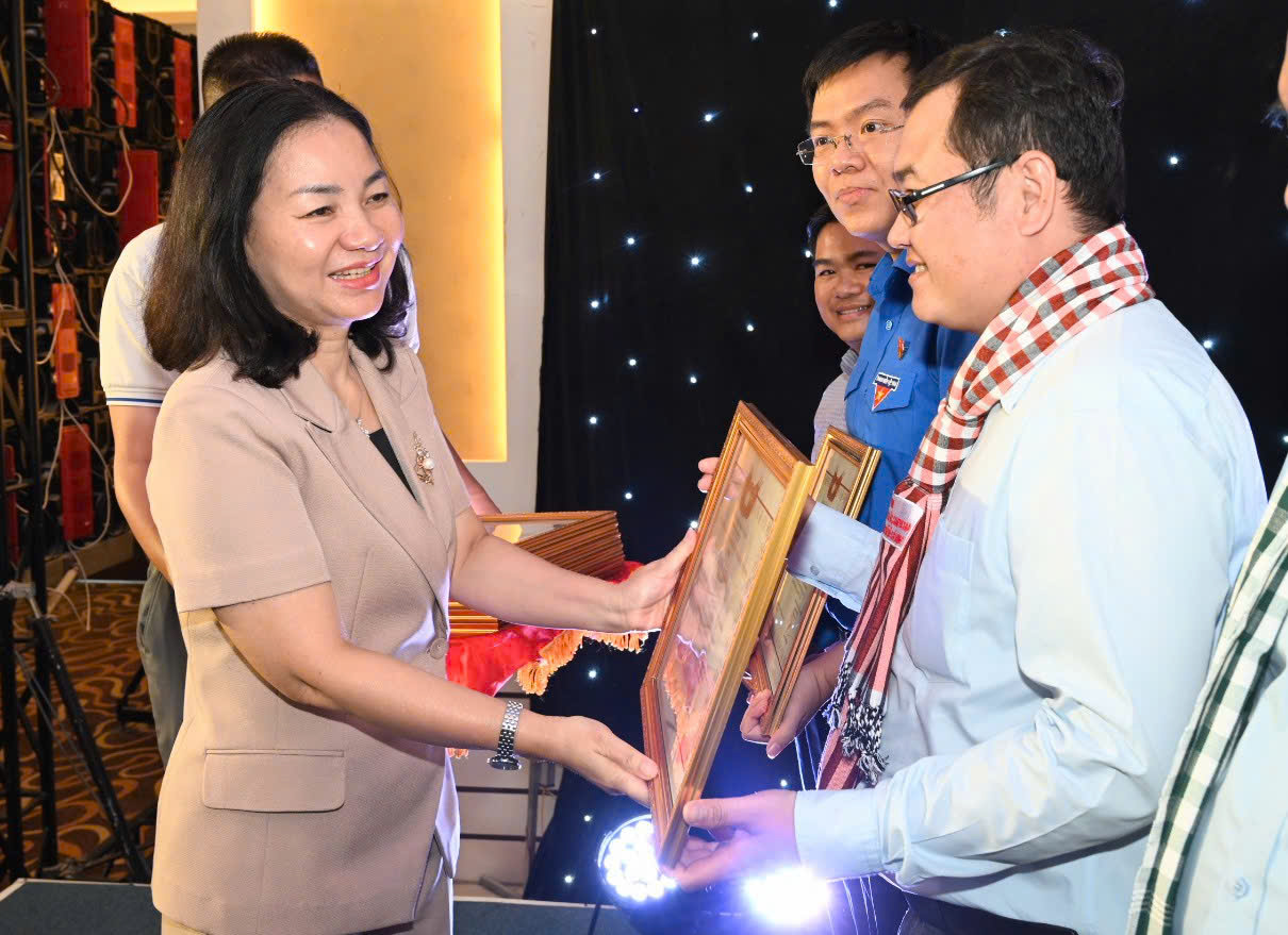 Đồng chí Trương Thị Bích Hạnh biểu dương các tập thể. Ảnh: QUỐC THANH