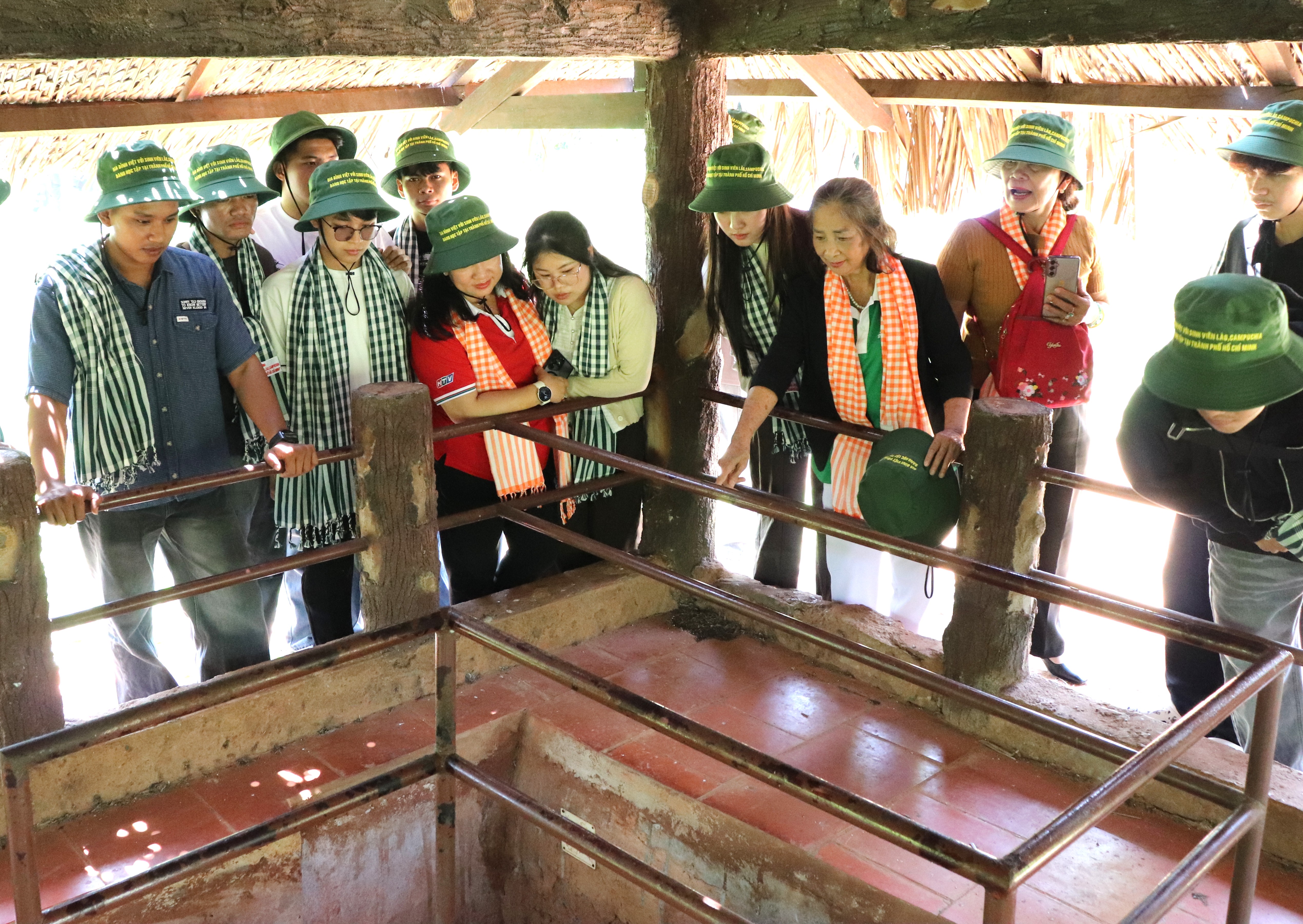 Các đại biểu tham quan Khu di tích lịch sử Địa đạo Long Phước. Ảnh: THÁI PHƯƠNG