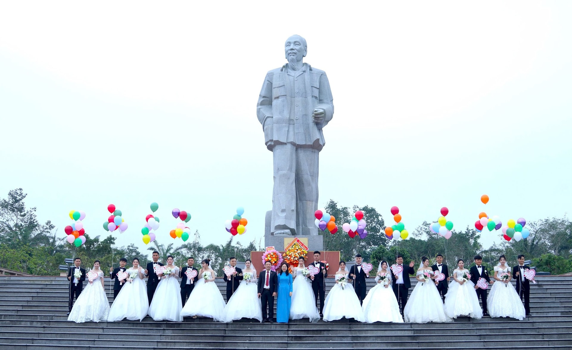Trước đó, 11 cặp đôi đã dâng hoa tưởng niệm Chủ tịch Hồ Chí Minh tại Quảng trường mang tên Người, chụp ảnh lưu niệm và cùng thực hiện nghi thức thả bóng bay, gửi gắm ước nguyện về một cuộc sống hôn nhân bình an, hạnh phúc.