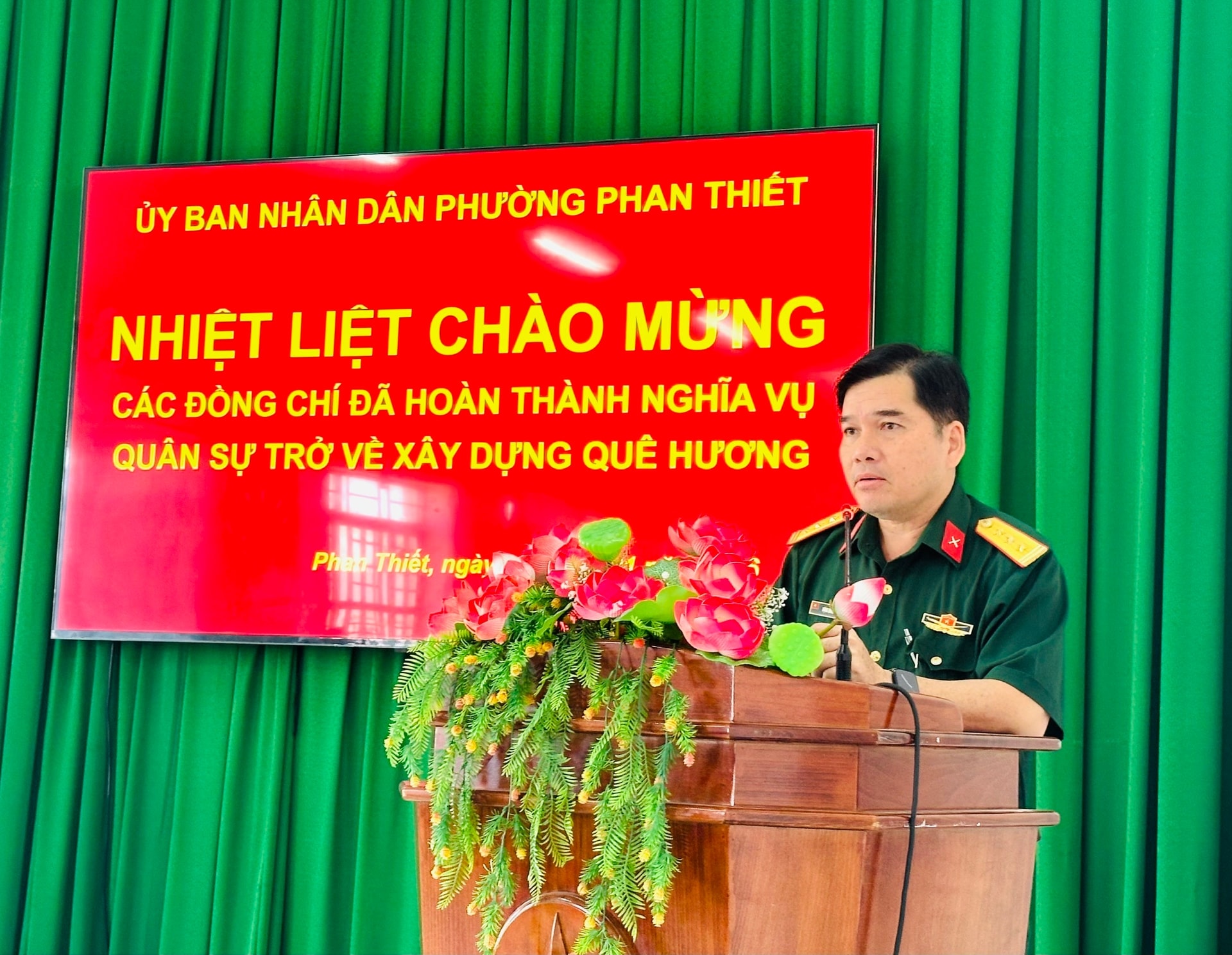 Thượng tá Đặng Quốc Khánh, Chỉ huy trưởng Ban CHQS phường Phan Thiết tại buổi đón tiếp các quân nhân xuất ngũ trở về