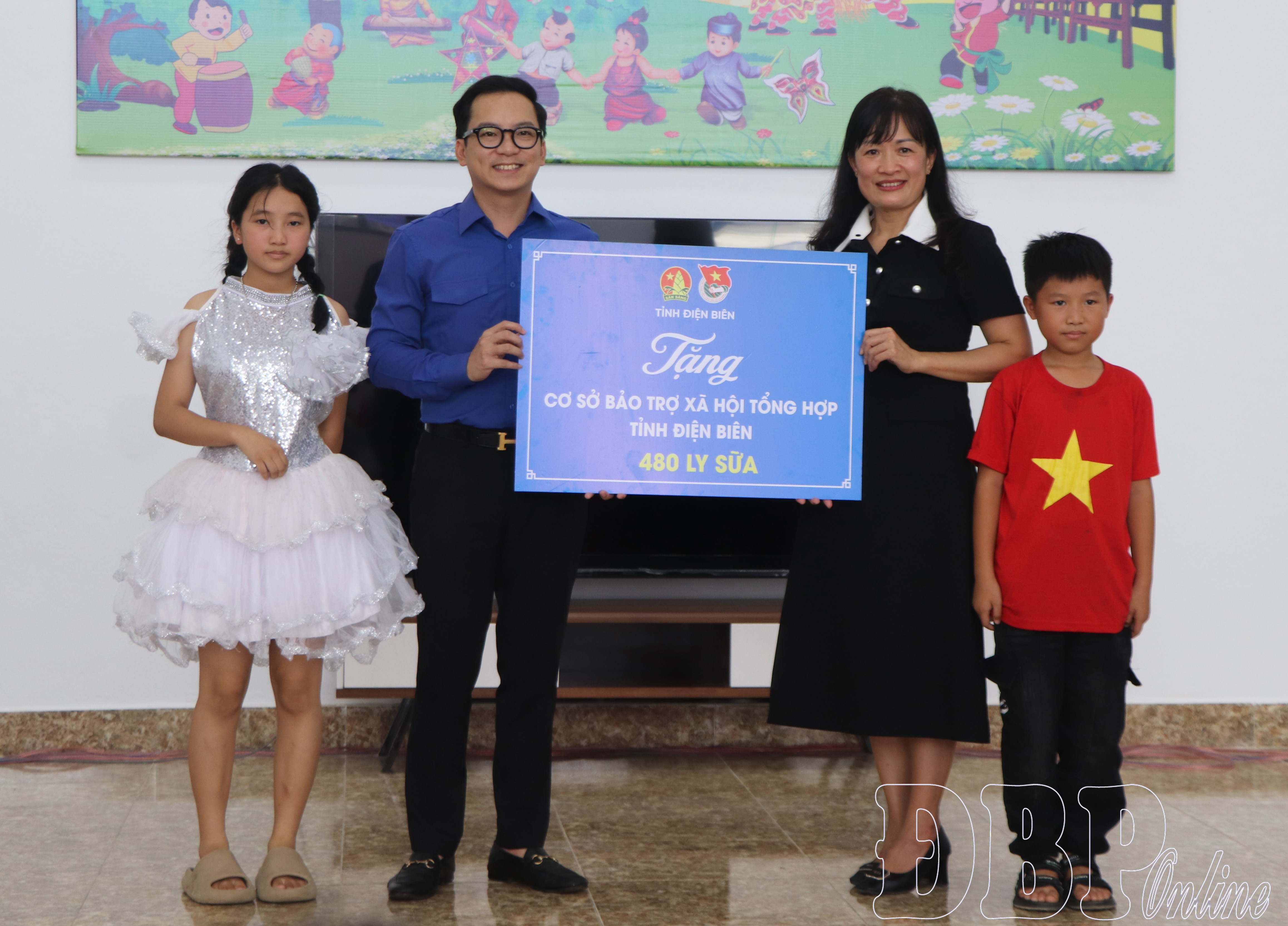 Tỉnh đoàn Điện Biên trao tặng 480 ly sữa cho trẻ em tại Cơ sở Bảo trợ xã hội tổng hợp tỉnh.