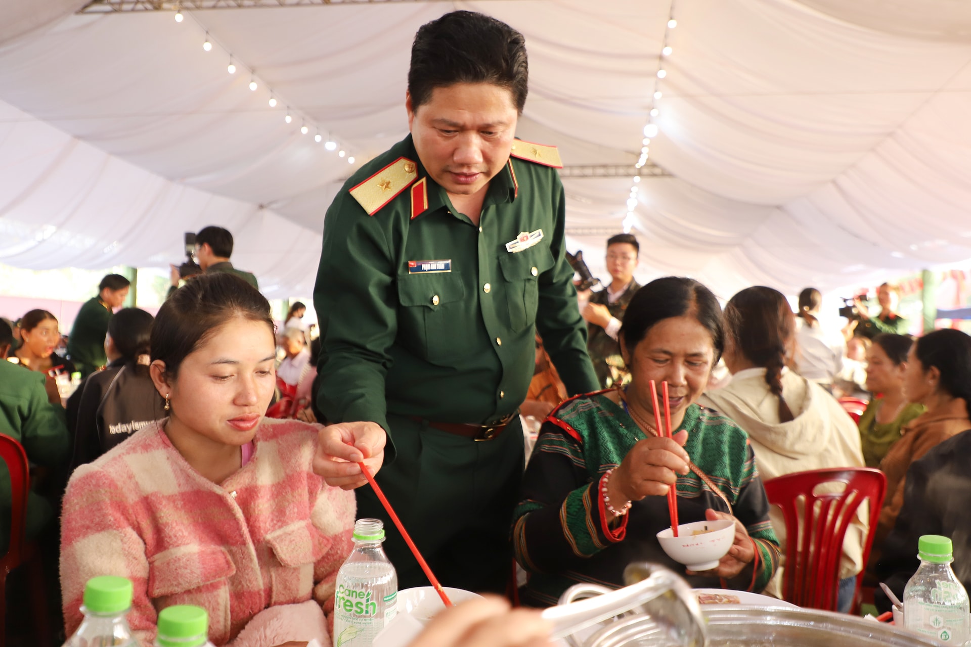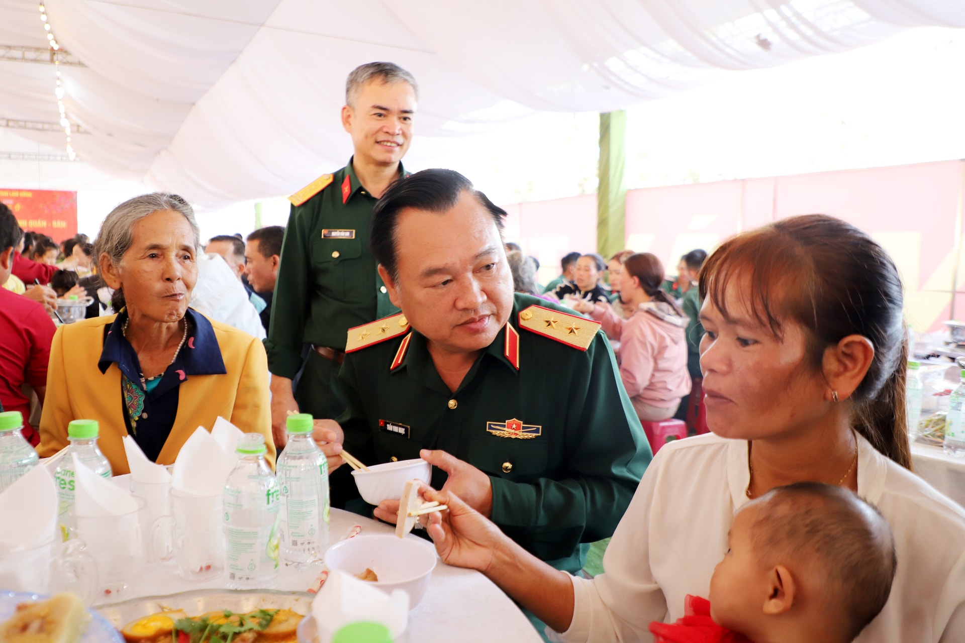 Lãnh đạo Quân khu 7 cùng ăn cơm tối với người dân địa phương