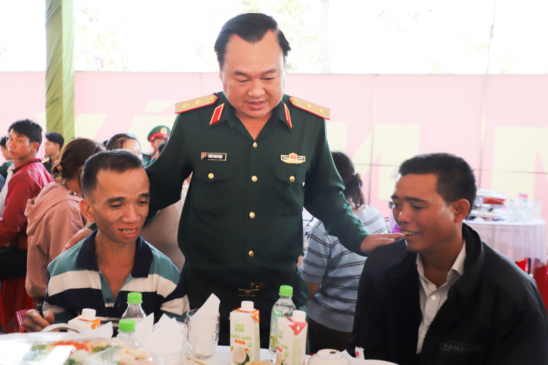 Lãnh đạo Bộ Tư lệnh Quân khu 7 tới từng bàn ăn, động viên, thăm hỏi người dân