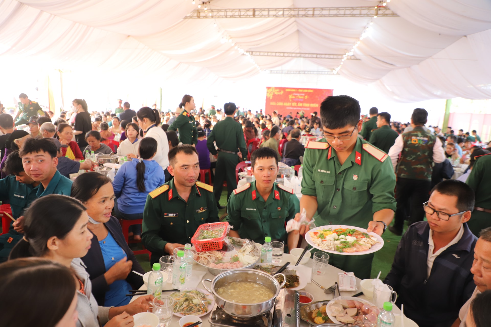 “Bữa cơm ngày Tết” được Bộ Tư lệnh Quân Khu 7 phối hợp với tỉnh Lâm Đồng tổ chức vào tối 6/2, tại Quảng trường Đức Lập (xã Đức Lập).