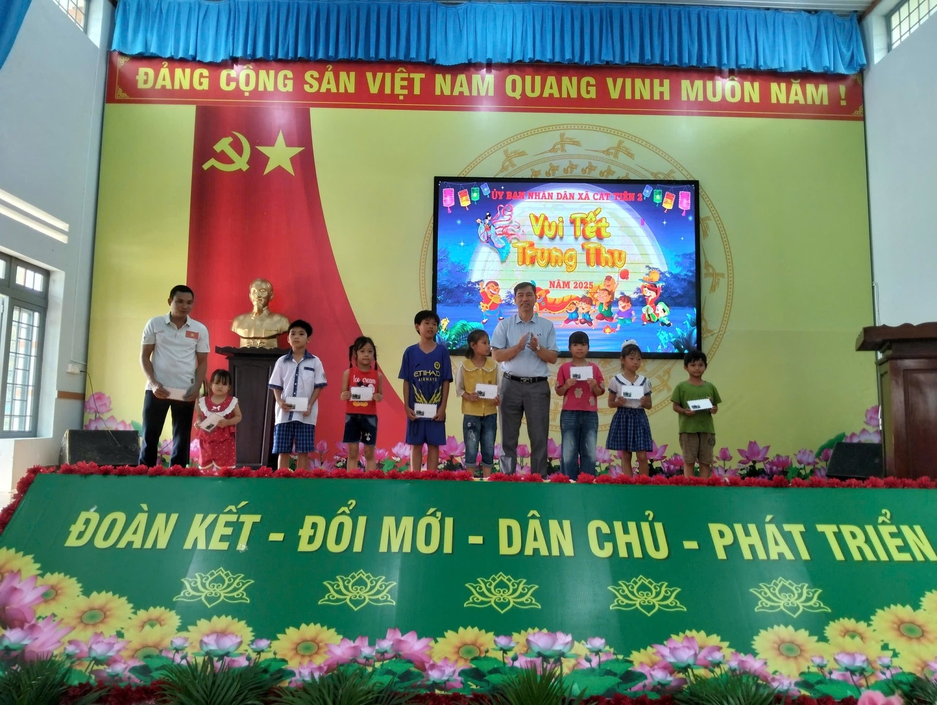 Nhằm thể hiện sự quan tâm, chăm lo của cấp ủy, chính quyền địa phương đối với trẻ em, nhất là các em có hoàn cảnh khó khăn, xã Cát Tiên 2 đã trao 45 phần quà, mỗi phần trị giá 300.000 đồng, động viên các em vươn lên trong học tập.