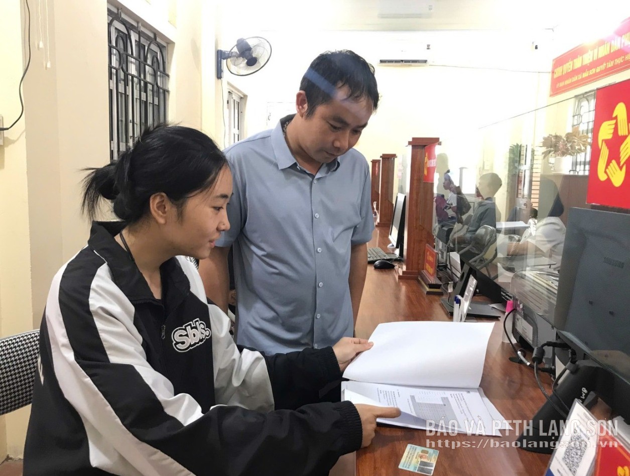 Công chức "một cửa" xã Mẫu Sơn hướng dẫn người dân thực hiện thủ tục hành chính