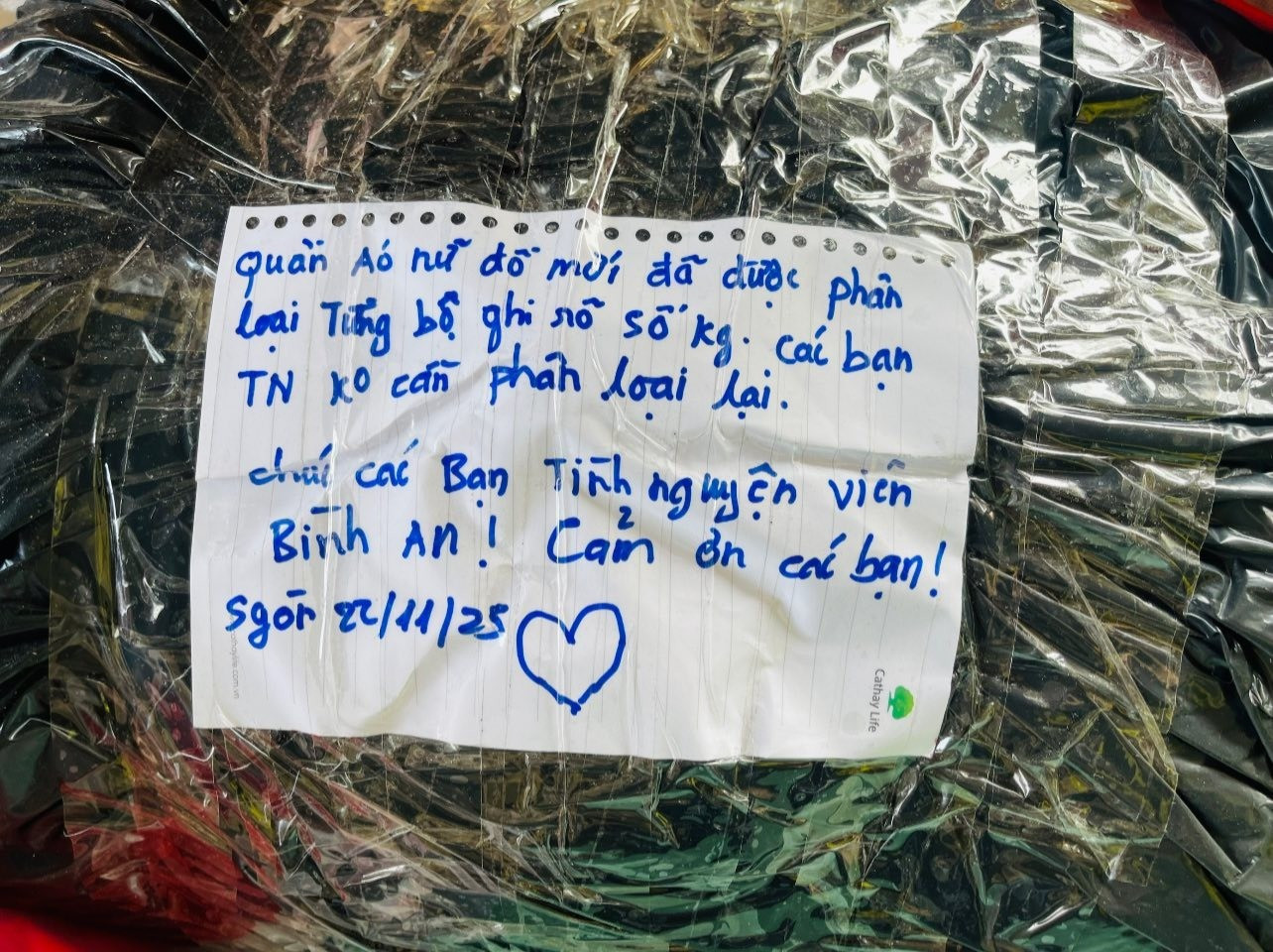 Đôi khi một dòng ghi chú nhỏ cũng đủ tiếp thêm năng lượng cho các tình nguyện viên. Ngoài ra, nhu yếu phẩm cho phụ nữ cũng được chú trọng không kém. Nguồn: @hokimngan.3110