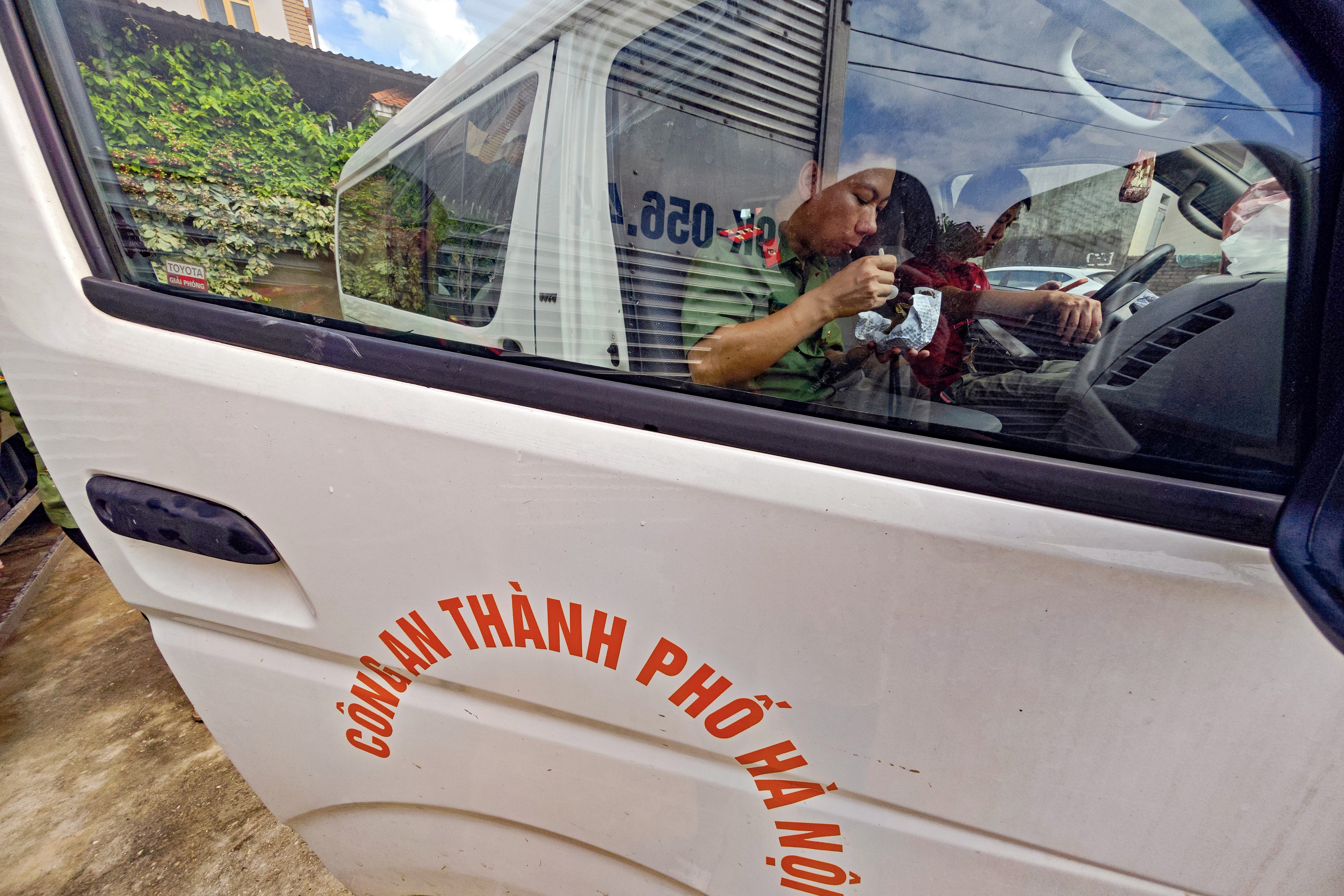 Bữa ăn vội của bác sỹ Bệnh viện CATP Hà Nội để sau đó tiếp tục dọn bùn giúp dân