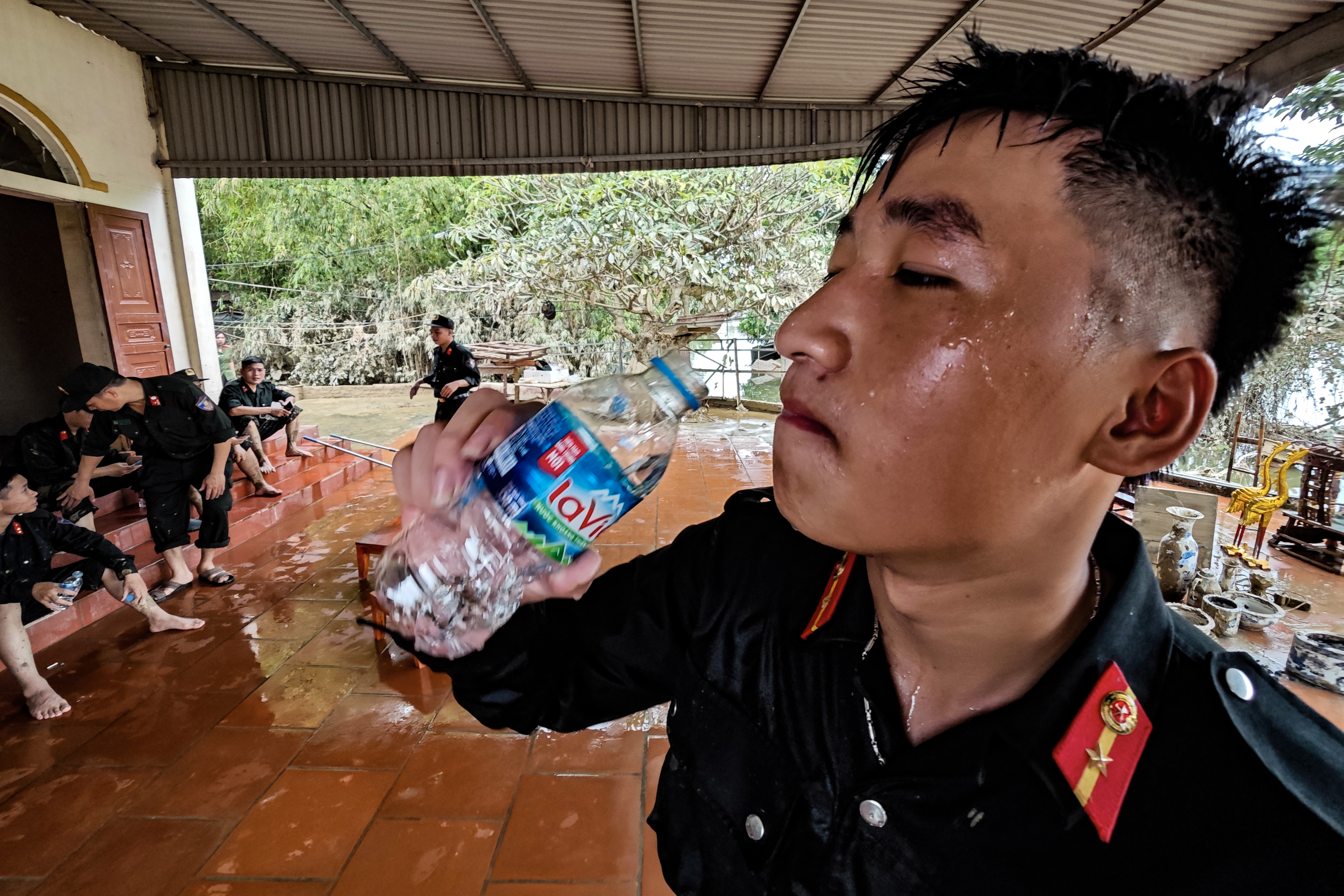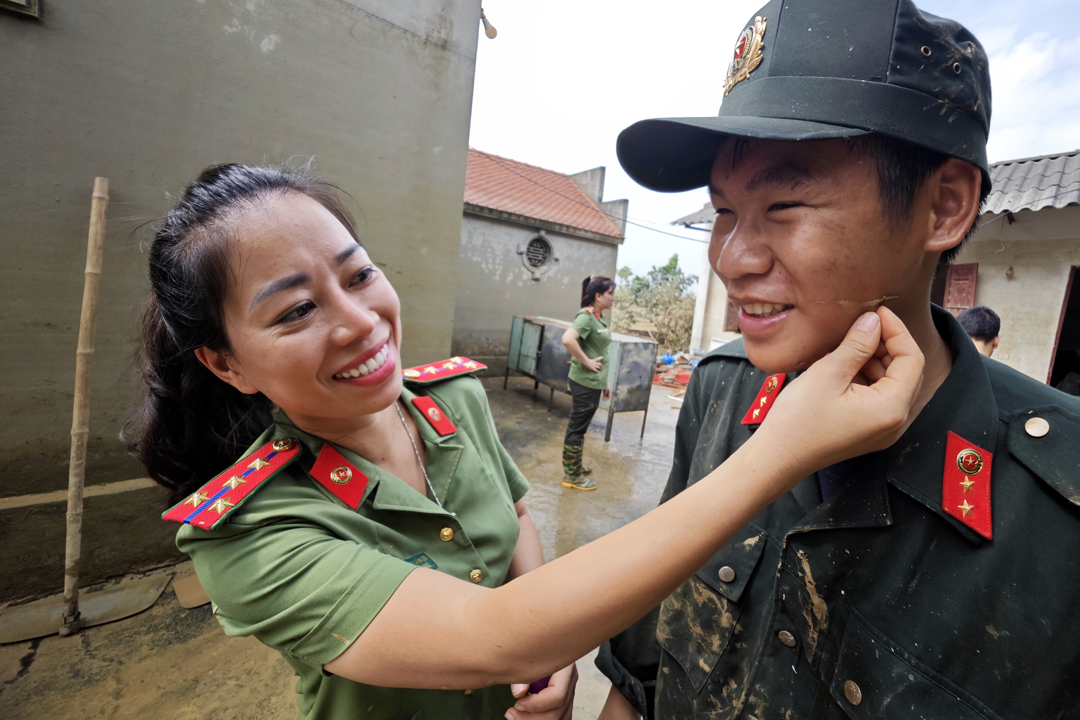 Chiến sỹ Cảnh sát cơ động CATP Hà Nội tất tả dọn dẹp giúp dân