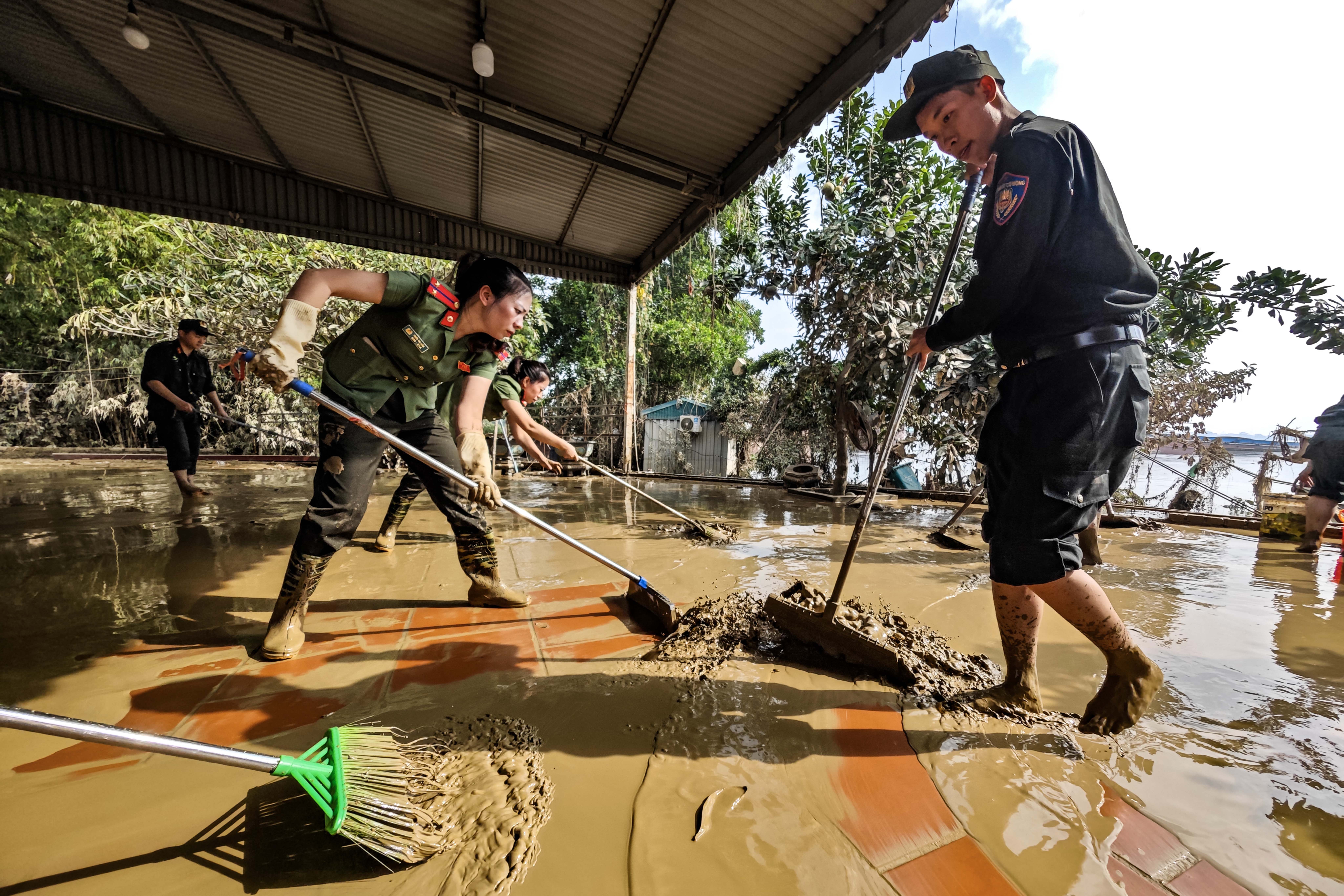 Từng lớp bùn được lực lượng CATP Hà Nội dọn dẹp kỹ