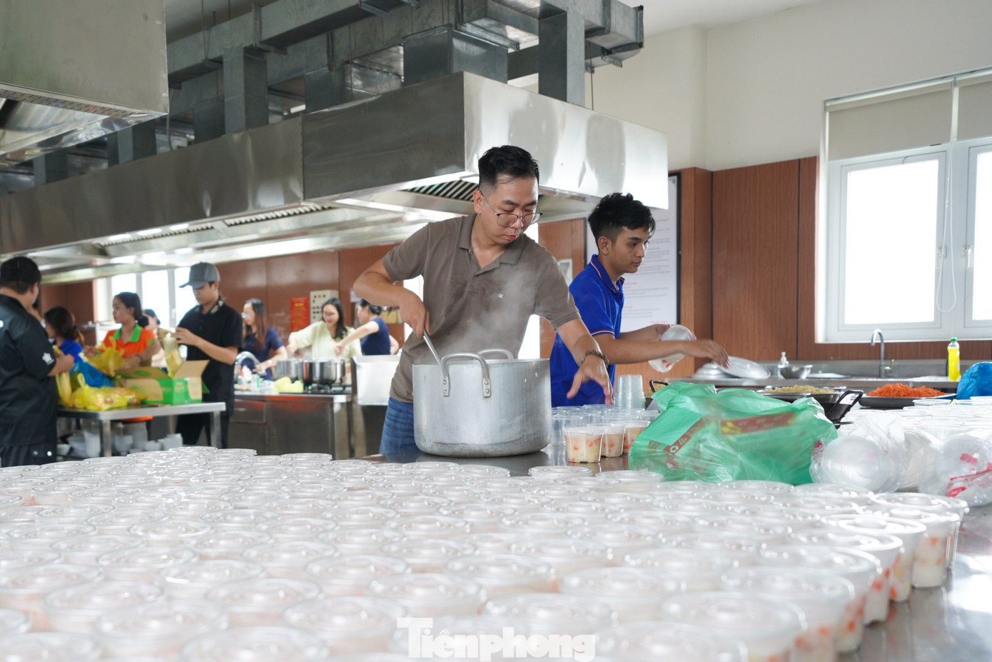 Dù mưa lũ, điều kiện khó khăn, nhưng các bạn đoàn viên thanh niên vẫn nỗ lực để đảm bảo những suất cơm nóng với đầy đủ rau củ, thịt cá cho các hộ dân bị nước lũ "bủa vây" ở các khu dân cư Tây An, Phong Nam...